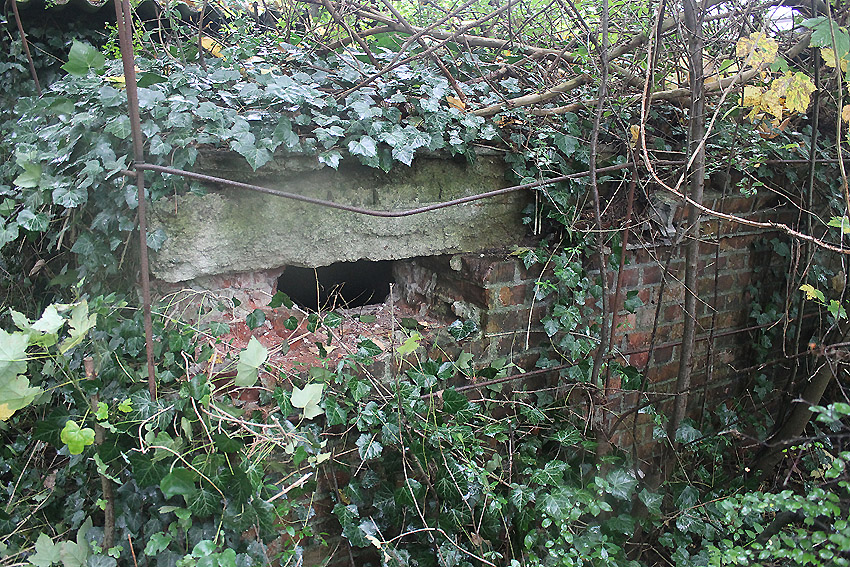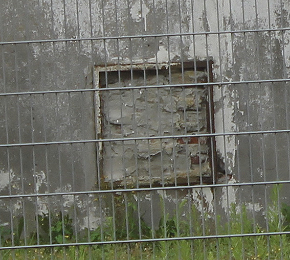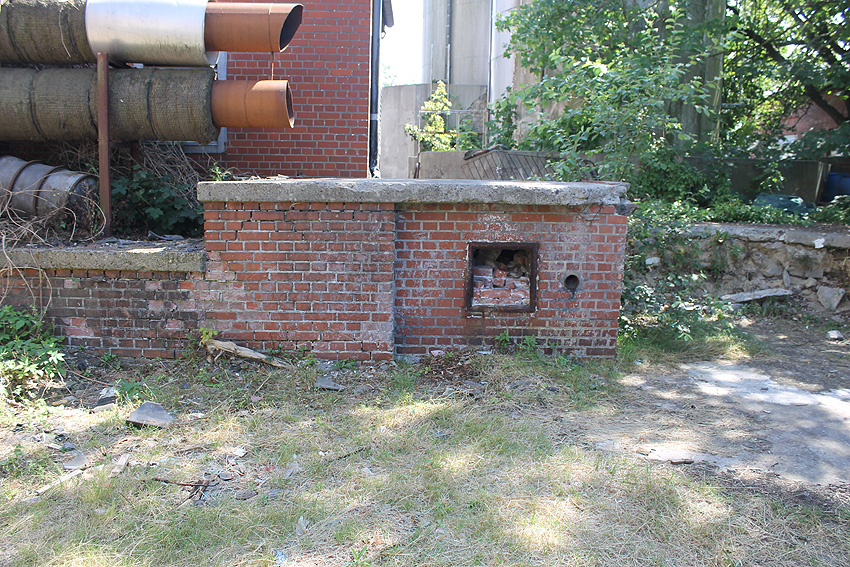 Nahe der Kreuzung Schillerstraße / Börsenstraße befindet sich nordwestlich in einer Wand dieses vermauerte Objekt. War dies ein Rahmen für eine LS-Klappe?
