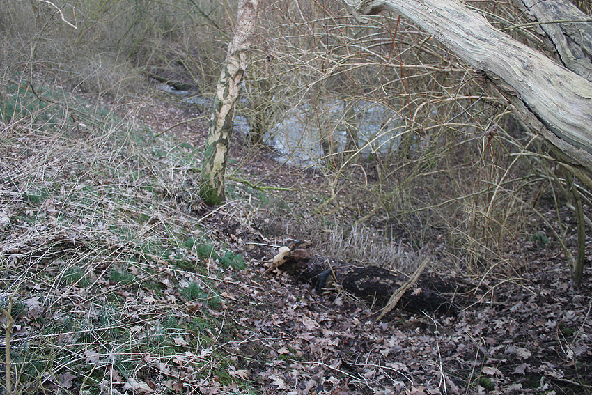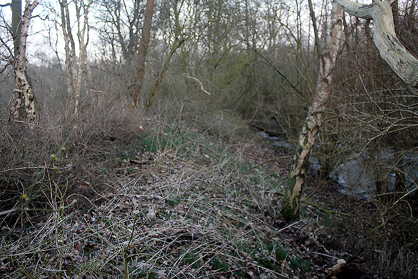 Nachtrag 09.02.18: Weitere Trümmerstücke am Fortgraben und alte Zaunreste. Die Stahlklappe mitsamt Schacht liegt in einer Linie mit dem Stichgraben zur Maade und dem Fortgraben. In diesem Bereich müsste eigentlich auch die neuzeitige Pipeline der NWO durch den Maadebogen / Fort Schaar führen. Damit hängt der historische Schacht aber keinesfalls zusammen.