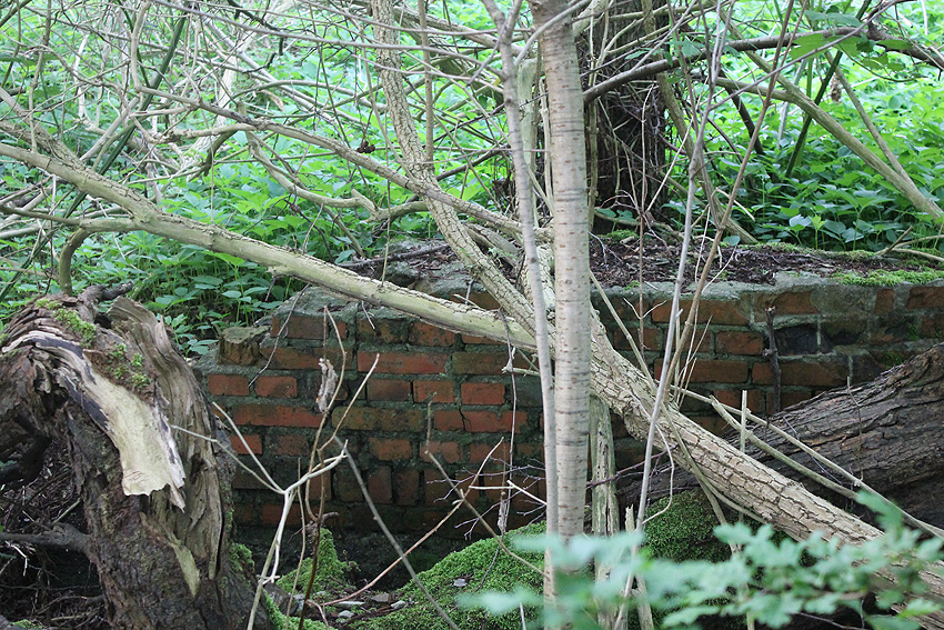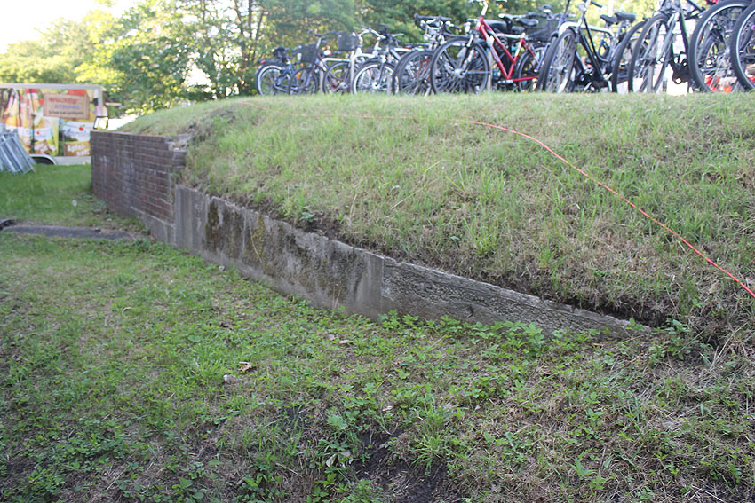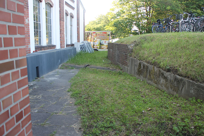 Die südliche gelegene Betonwand und auch das im oberen Bild erkennbare, damit auf einer Flucht liegende Konstrukt werden aus Nachkriegszeiten stammen. Am heutigen Kulturzentrum "Pumpwerk" / Nord- und Ostseite (eventuell auch Süd- und Westseite / noch nicht gefunden) befinden sich diese massiven Strukturen. Handelt es sich hierbei zumindest teilweise um LS-spezifische Verbunkerungen der alten Pumpwerksanlagen aus Zeiten vor oder während des Zweiten Weltkrieges?