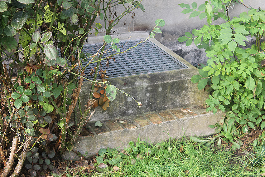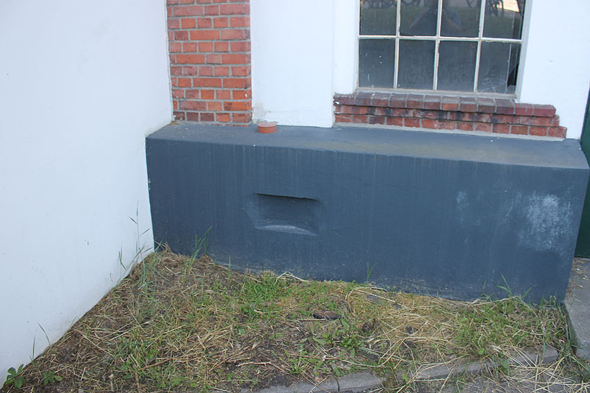 In Jever an der Ostseite des Gebäudes Schlachtstraße 1 existiert dieser Kellerzugang. Kohlenkeller mit Klappe oder im Zweiten Weltkrieg hergerichteter Luftschutzkeller? Wer hat Informationen?