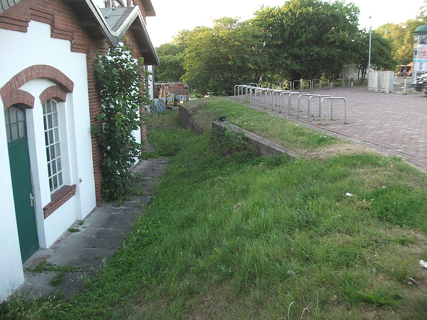 In Jever befindet sich am Bahnhofsgebäude gleisseitig dieser Kellerabgang. Eventuell ein ehemaliger Splitterschutzeingang zu einem Luftschutzkeller? Wer hat Informationen?