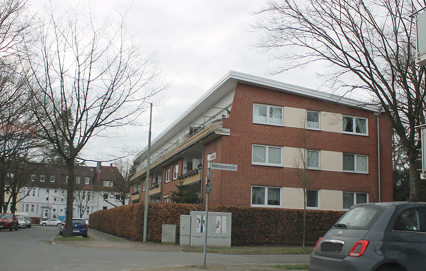 An drei Vorkriegs-Mehrparteienhäusern an der Schillerstraße (Nr. 60 / 62 / 64 / 66 / 68 / 70) befinden sich ca. 5 Meter vom Gebäude entfernt insgesamt sechs dieser Öffnungen, mittlerweile versiegelt. Was war das? Für Zisternen wohl zu groß. Eventuell Schächte von LS-Kellern / externe Notausstiege? Kennt jemand so etwas? Auch an anderen Stellen in der Stadt sind solche Verdachtsobjekte existent (gewesen). Die Objekte werden auf unseren Seiten ebenfalls vorgestellt. Selten wurden sie sogar als "Ausstiegs-Kriechtunnel" nachgewiesen. Der Anwohner, den wir hier an der Schillerstraße getroffen haben, wusste leider "von nichts". "Tunnel" vom Keller aus soll es hier nicht (mehr?) geben... Im ganzen Stadtgebiet finden sich - vornehmlich an Gebäuden, die ab 1935 im Zuge des reichsweiten Luftschutzgesetzes LS-gerecht ausgestattet wurden, solche Öffnungen. Hier - Beispiel Weichselstraße in Fedderwardergroden (1941):
