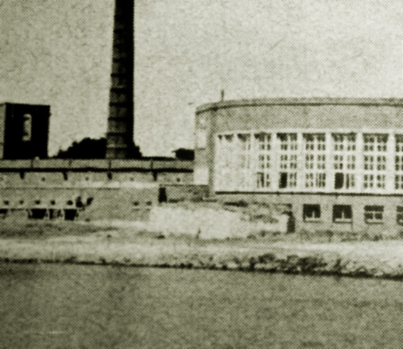 Dies war das ehemalige Pumpwerk / Trinkwasser-Zisterne am Anton-Dohrn-Weg. Noch heute befindet sich dort eine mit Kleingärten überbaute, erhöhte, rechteckige Fläche. Einige Betonwandbereiche sind zu erkennen. Wie auf dem oberen Bild aus der frühen Nachkriegszeit zu sehen ist, verfügte die Anlage über zwei massive Eingangsbauten mit Flankenschutz an der Nordseite, westlich und östlich. Eventuell bestanden die Bauten aus Beton. Auf der Erhöhung zu sehen vertikale Luftschächte. Auf der Erhöhung das ehemalige Pumpwerksgebäude mit WK 2-Sirene. War diese Anlage verbunkert, beziehungsweise - diente sie sogar als Behelfs-Personenluftschutzraum? Das Gebäude stand auf einer noch heute vorhandenen Erhebung, darunter befand sich eine Trinkwasser-Zisterne: