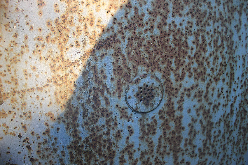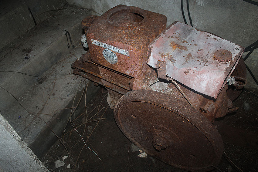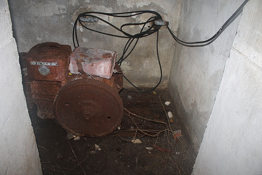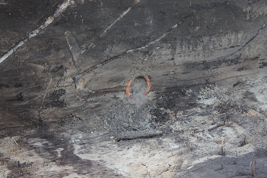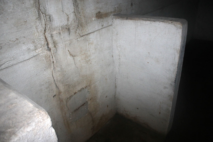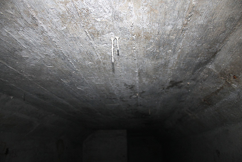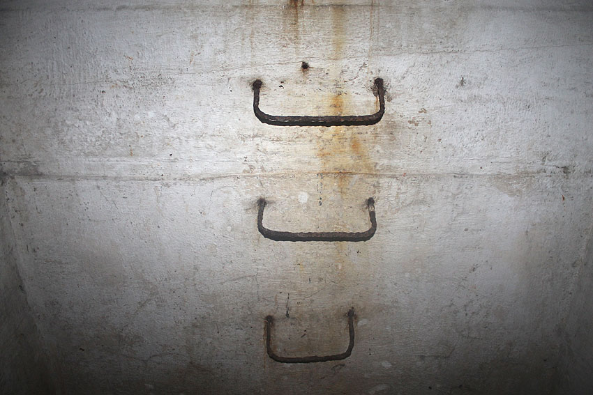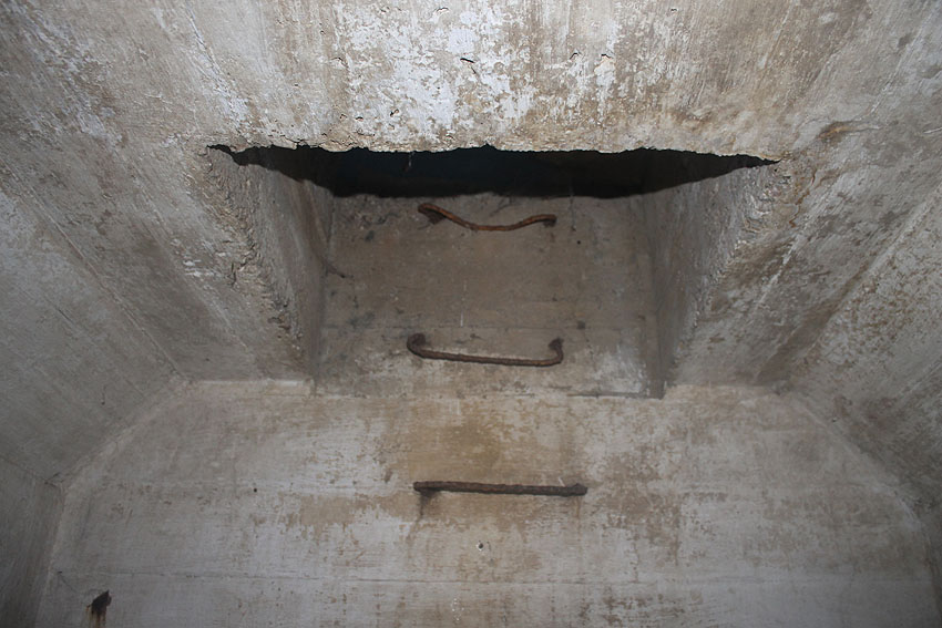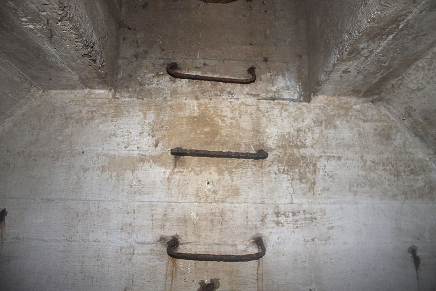 Im Inneren dieses Unterteiles des Notausstiegsturmes wird sich ursprünglich mindestens ein Steigeisen befunden haben, dessen Rest noch erkennbar ist (siehe weiter unten) - eher aber zwei. Dieses bzw. diese werden in den Jahrzehnten großteilig weggerostet sein.