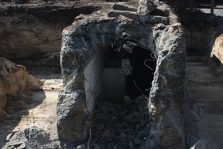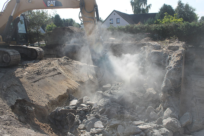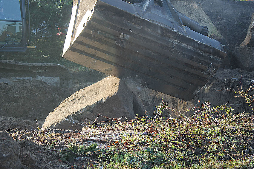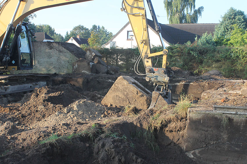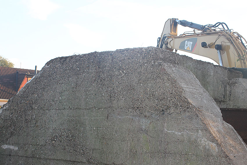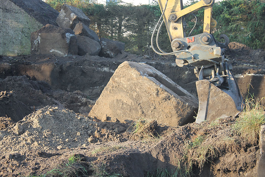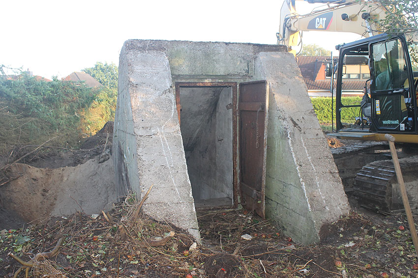 Am 7. und 8. September 2016 wurde nun der betonierte Deckungsgraben an der tom-Brok-Straße Ecke Bahnhofstraße in Schortens / Heidmühle abgerissen. Das Bauwerk konnte beim besten Willen nicht in das geplante Neubauvorhaben (Einfamilienwohnhaus) integriert werden und musste deshalb leider weichen. Der Abbruch erfolgte durch die Firma Swyter GmbH aus Jever. Wir hatten die Gelegenheit, den Abbruch ausführlich zu dokumentieren. Unser herzlicher Dank an den Eigentümer des Grundstückes, Herrn Bruns, für die Ermöglichung!