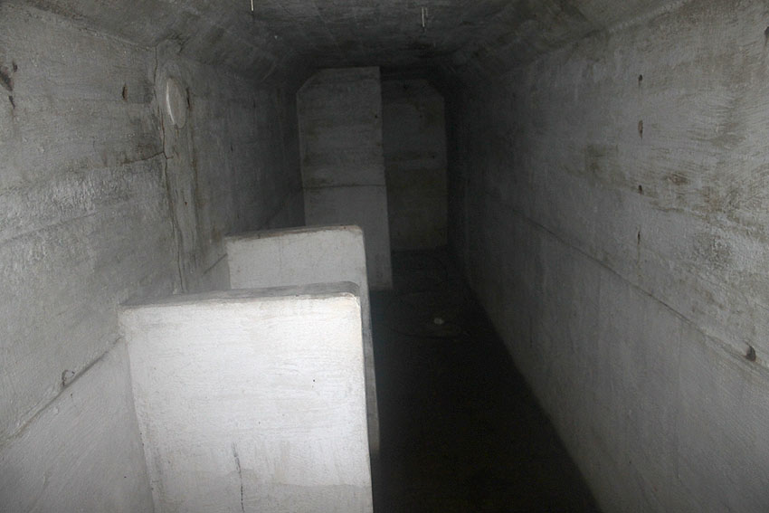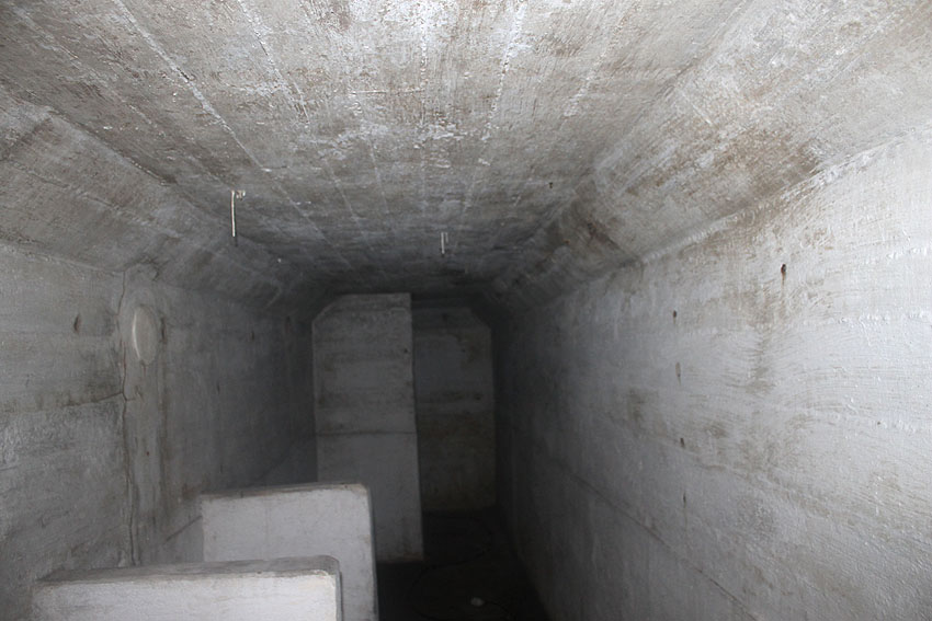 Die Anlage wurde nicht im Verbund mit der Bodenplatte gegossen, sondern getrennt gefertigt, also auf die Platte gesetzt. Boden, Wände und Decken sind im Schnitt mit 50 cm Stärke ausgeführt worden. Beim Abriss des Bauwerkes wurden am 7. September im inneren L-Knick-Bereich an der Außenwand unter der Erde das umgekippte Unterteil des Notausstiegsturmes...
