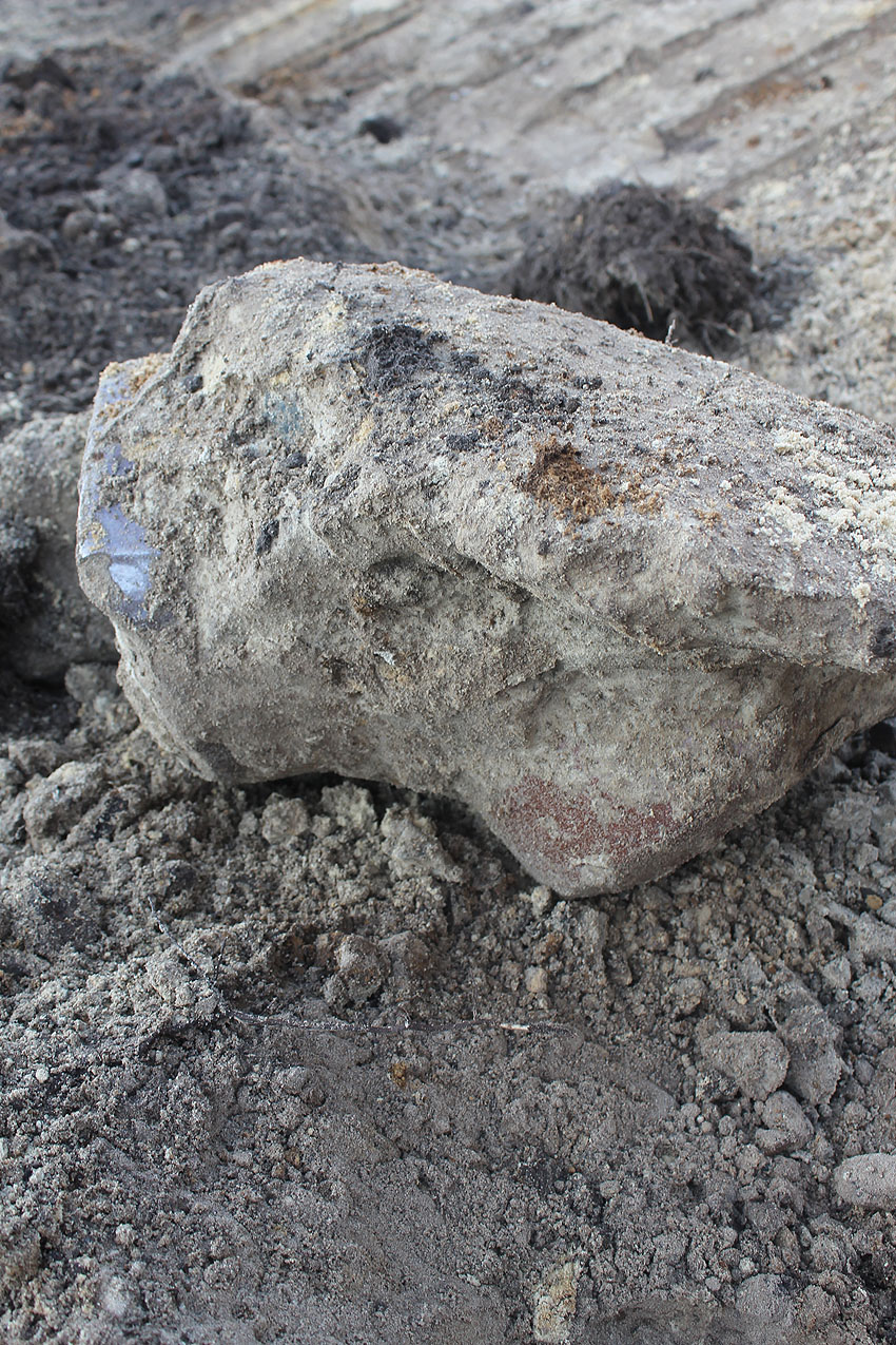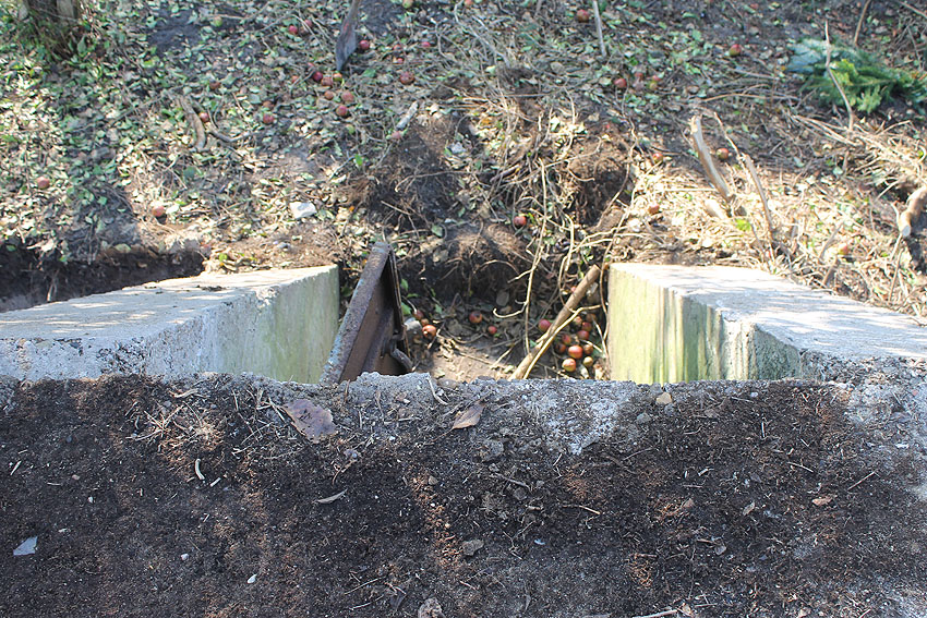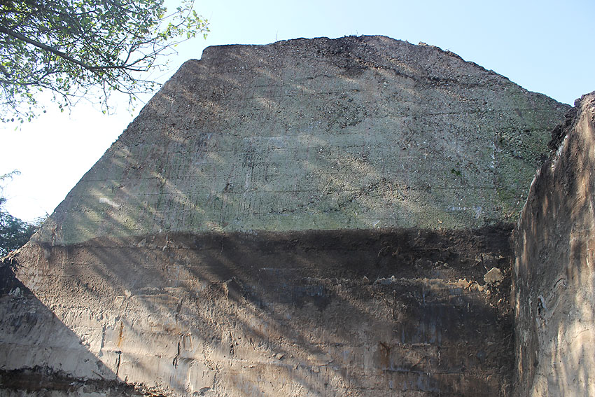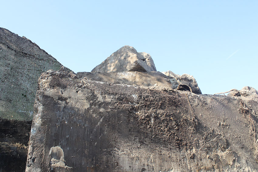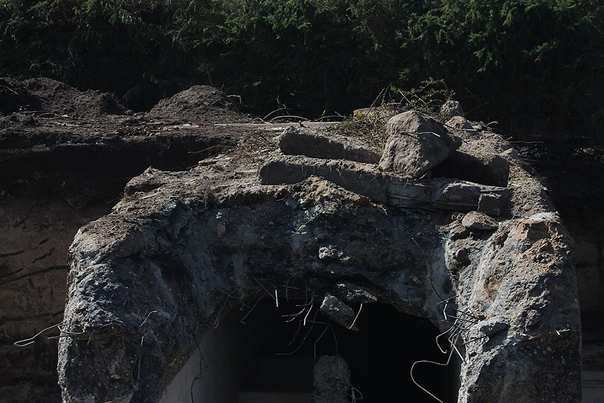 - Die Elemente müssen irgendwann in den 1980er Jahren neben das Bauwerk unter die Erde verbracht worden sein. Die beiden kleineren Trümmerstücke könnten Fragmente des Oberteiles vom Notausstiegsturm darstellen.