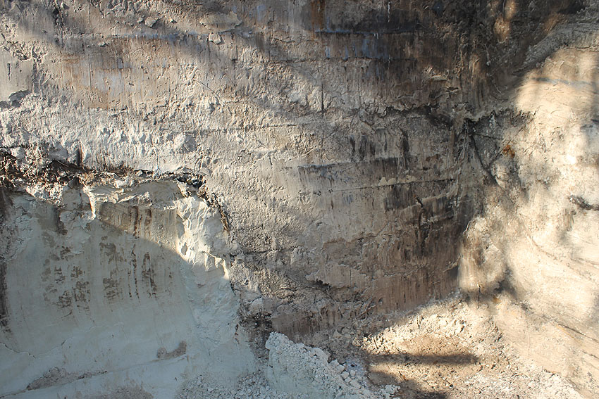 Der um das Bauwerk herum befindliche feine Sand wurde damals während der Errichtung angefahren, um hier eine "Lockerung" des Erdreiches herbeizuführen / Verdämmungseffekt - Druck bei Nahtreffer. Dies ist bei vielen Deckungsgräben derart durchgeführt worden.