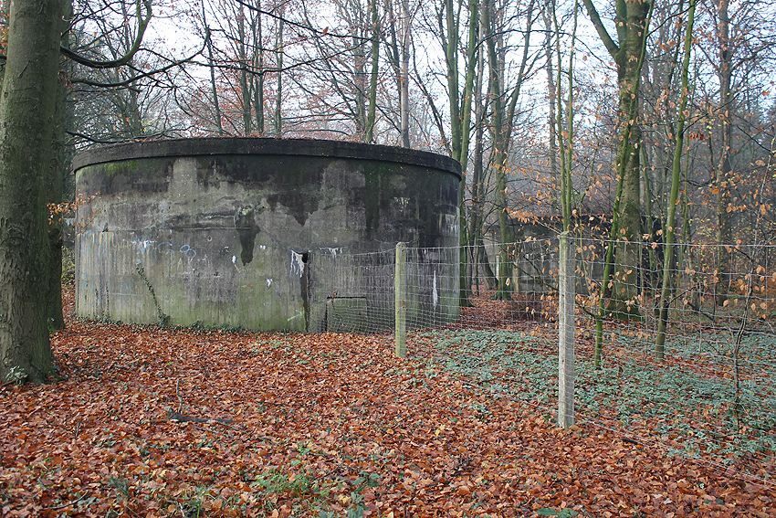 Hinten links der Rundbunker: