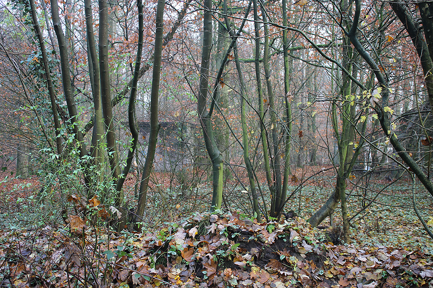 Rundbunker 3 OST mit Splitterschutzvorbau / wohl bombensicher (beide Zugänge in den Splitterschutzvorbau sind zugemauert)...