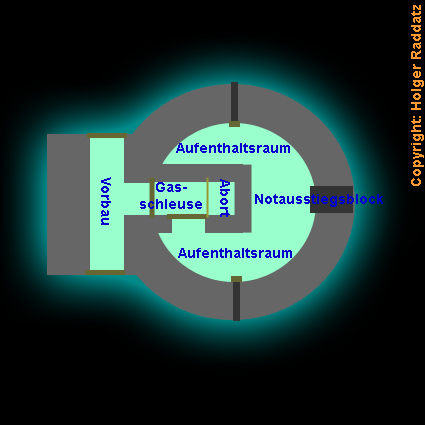 Erkennbar hier der versiegelte Notausstieg.