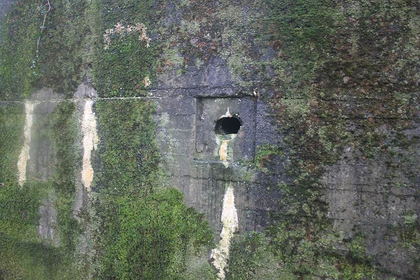 Am hier nicht ersichtlichen rückwärtigen Bereich des Westsplitterschutzvorbaues befindet sich ein heller Kreis, war hier ein ROTES KREUZ (wie am westlichen Rundbunker - Bilder folgend) angemalt?
