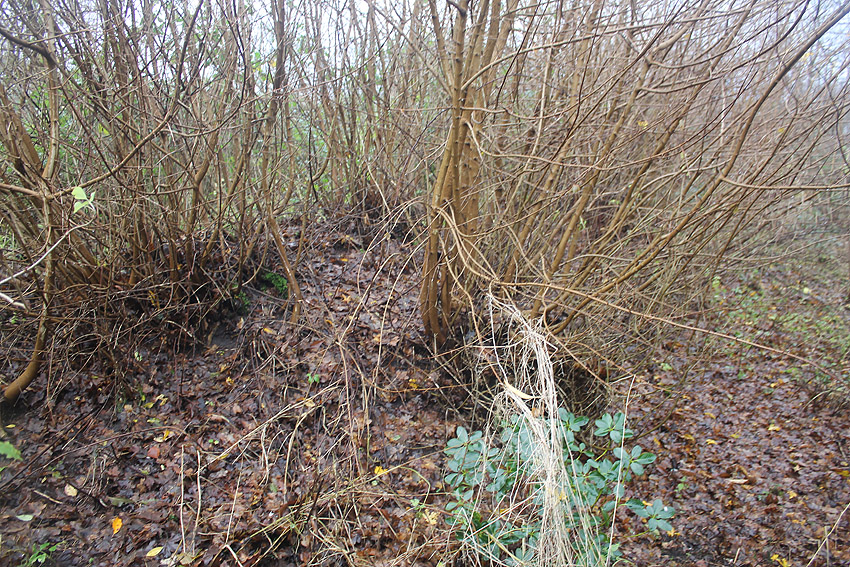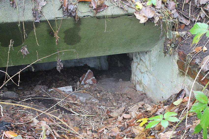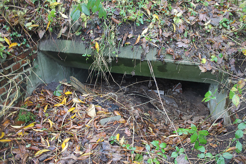 Dies ist der noch einigermaßen gut sichtbare Osteingang. Der Westeingang wurde nach dem Krieg bereits früh komplett zugeschüttet und überschüttet.
