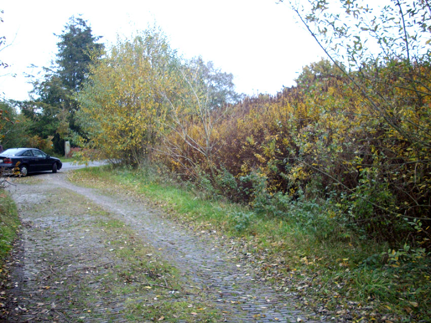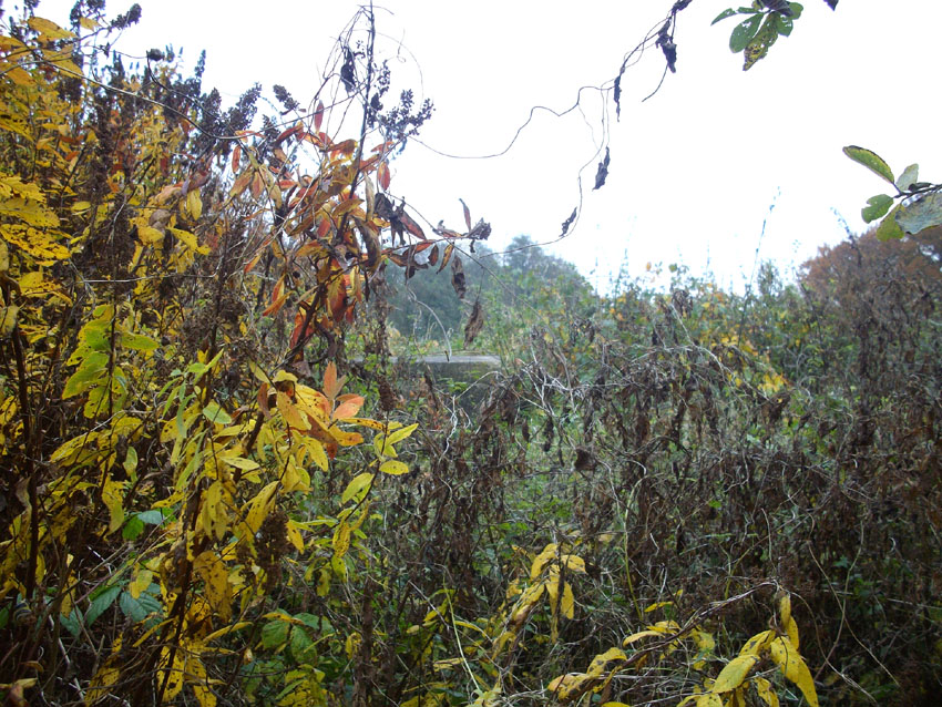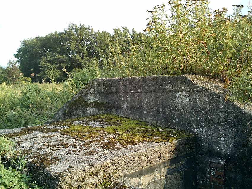 Der Deckungsgraben (im Hintergrund ein circa 50 Meter hoher Ziegelei-Schornstein, kein Lüftungsrohr des Grabens!). Die Ähnlichkeit des Fotos zum Herzbruchstollen Pflegeheim Banter Weg in Wilhelmshaven ist verblüffend: