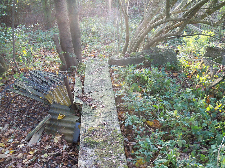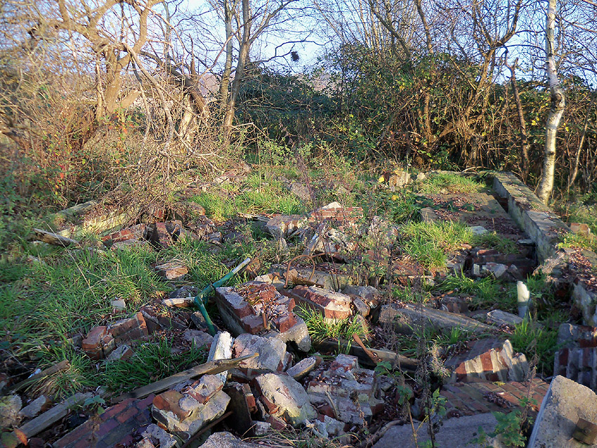 Aufgeschüttete Trümmer von betonierter Mannschaftsunterkunft 1