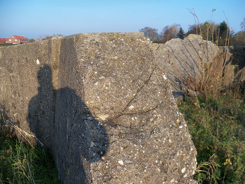 Erkennbar sind in den Trümmern halb abgerundete Betonteile. Die Unterkunft könnte demnach ein ähnliches Tonnendach besessen haben wie beispielsweise die Anlage bei Middels:
