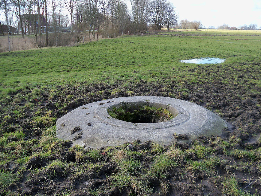 Dieser Tobrukstand / Ringstand einfachster Ausführung an der B 436 in Höhe Neustadtgödens, im Erdreich versenkt, ist bauartgleich zum Stand an der Brücke Ellenserdammer Tief / L 815. Beide Stände sind zudem bauartgleich mit den bekannten Wilhelmshavener und Emder Exemplaren dieser Art.