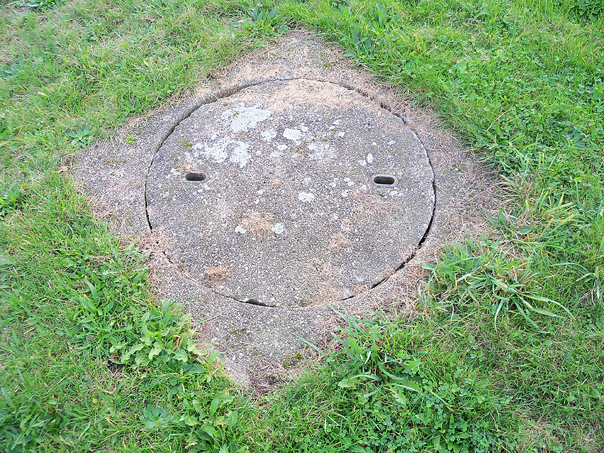 Der zweite Eingang ist lediglich noch an einer Flanke ersichtlich. Der Dachblock wurde abgetragen. Der Graben besitzt zwei mit Kanaldeckeln verschlossene Notausstiege. Möglicherweise wurde das Innere als nachkriegszeitige (Löschwasser?)Zisterne hergerichtet. Der ersichtliche Rohranschluss spräche dafür. Auch existieren Hinweise auf ein Fledermausquartier im Inneren. Einflugöffnungen für die Tiere sind allerdings nicht erkennbar.