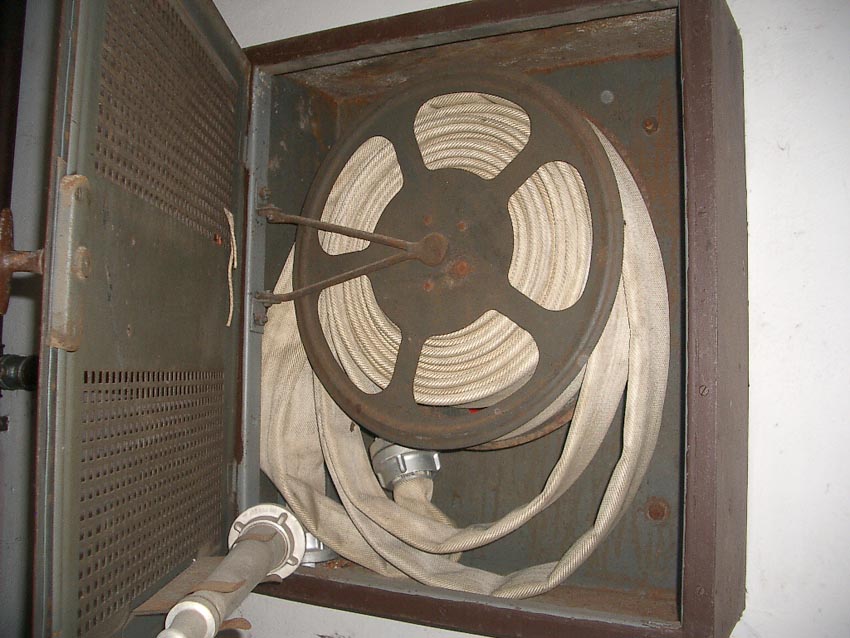 Original Löschschlauchkästen im Bereich des LS-Kellers für die Belegschaft.