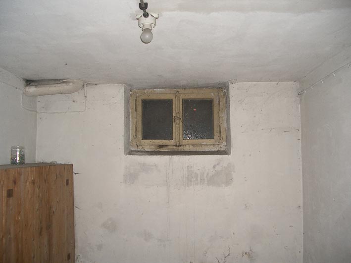 Blick von der Gasschleuse in Raum 3 des zweiten LS-Kellers. Zu diesem Raum ist keine Schutztür mehr vorhanden. Hinten eine der LS-Klappen vorm Fenster an der Westfassade.