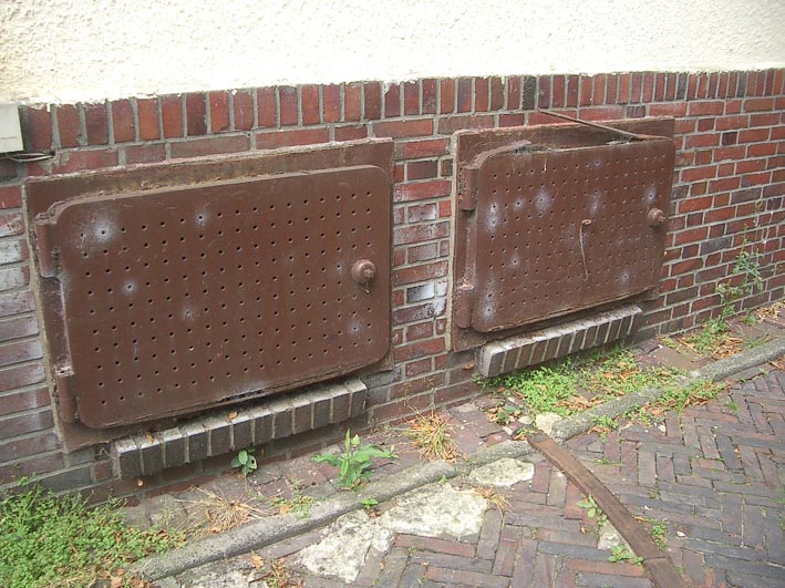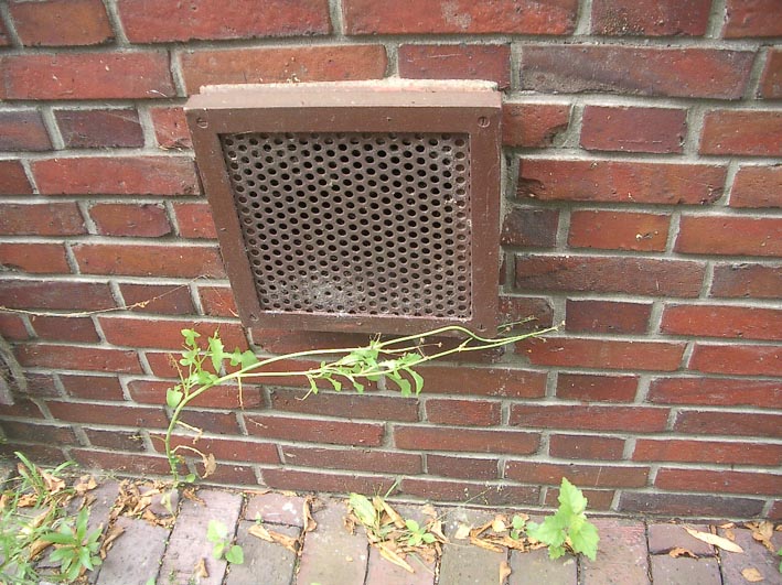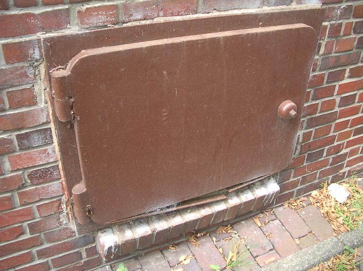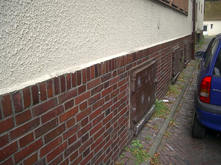 LS-Klappe an der Ostfassade. Hier hinter ist der Belegschafts-LS-Keller.