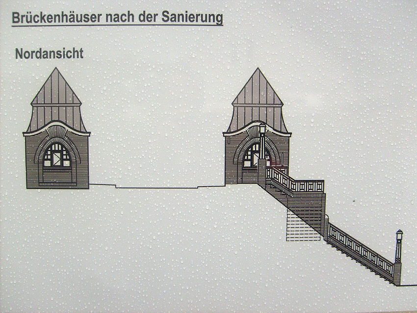 Die Sanierungsarbeiten an den Brückenhäusern wurden im September 2012 beendet. Die Betonverstärkungen im Bereich der Treppe / an der Straßenfläche im Oberbereich der Treppe sind erhalten geblieben. Eine neue Tür wurde vor den ehemaligen Schutzraum gesetzt: