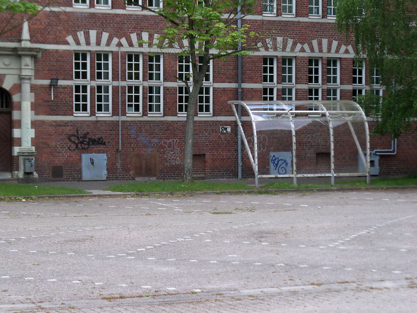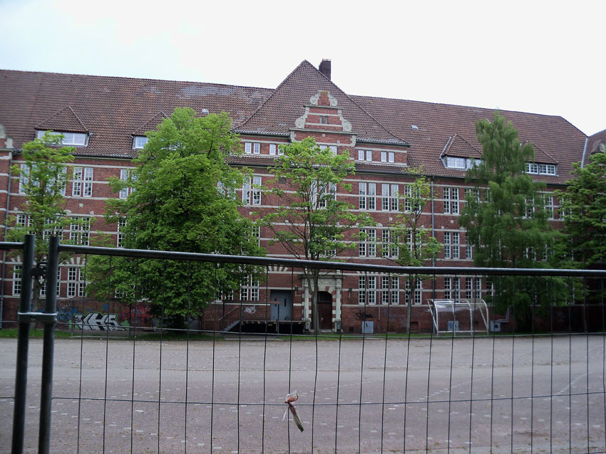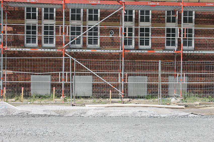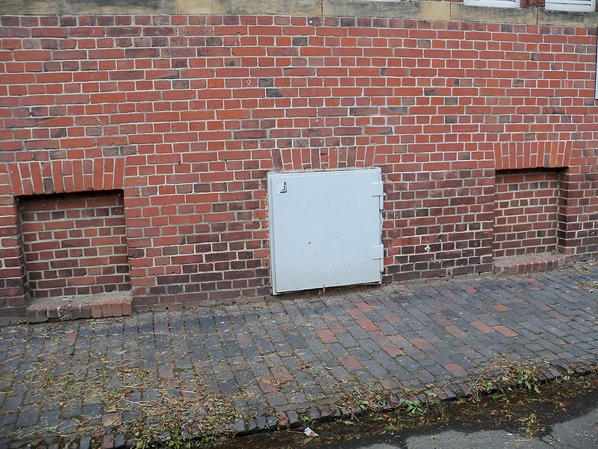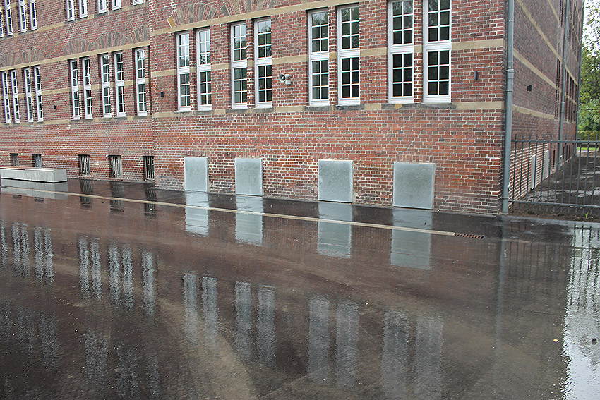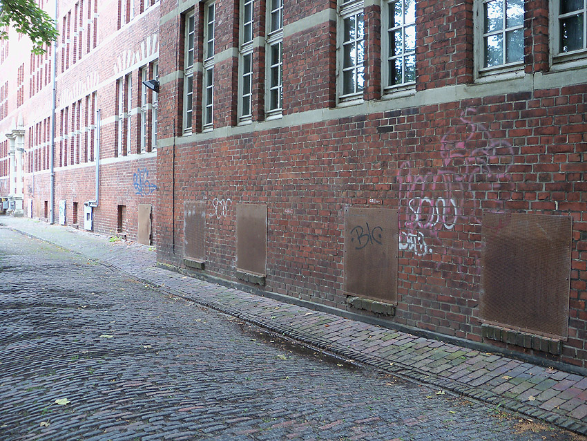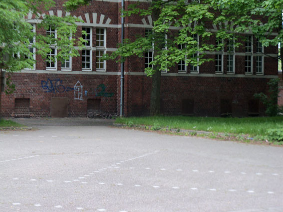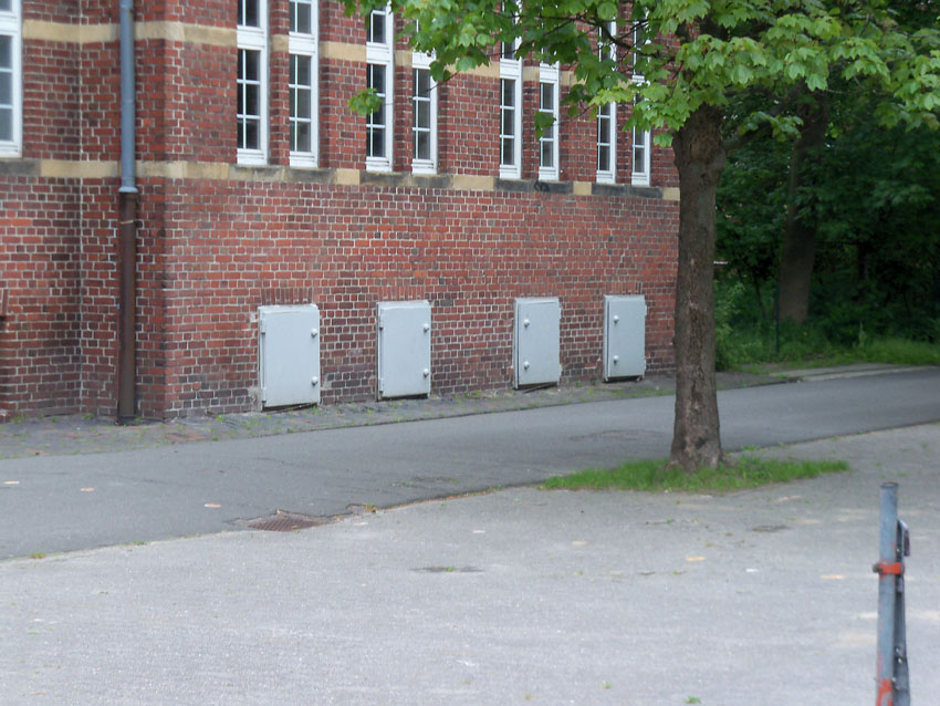 09.07.16: Hier finden zur Zeit Sanierungsmaßnahmen statt für die baldige Nutzung des Gebäudes als Grundschule. Die 10 noch erhalten gewesenen LS-Klappen sind bereits abgebaut worden und durch herkömmliche Stahlplatten ersetzt worden. Wir berichten weiter.