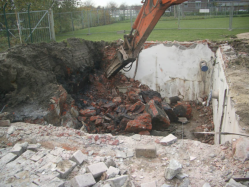 Hier zu sehen eine Betonverstärkung unter dem Mauerwerk und ein verblendeter Lüftungsschacht.