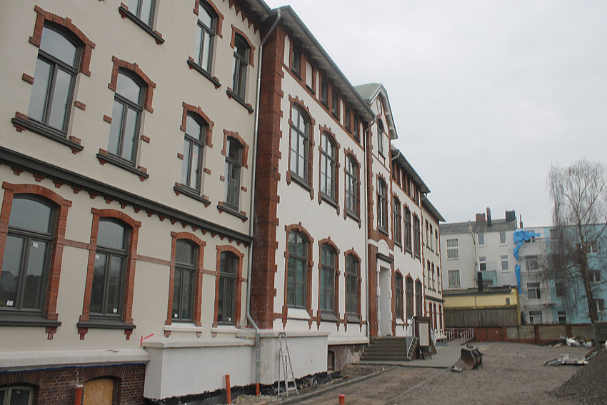 Die Sanierung des Gebäudes ist abgeschlossen. Etwa ein Viertel der Vorbauten ist abgerissen worden: