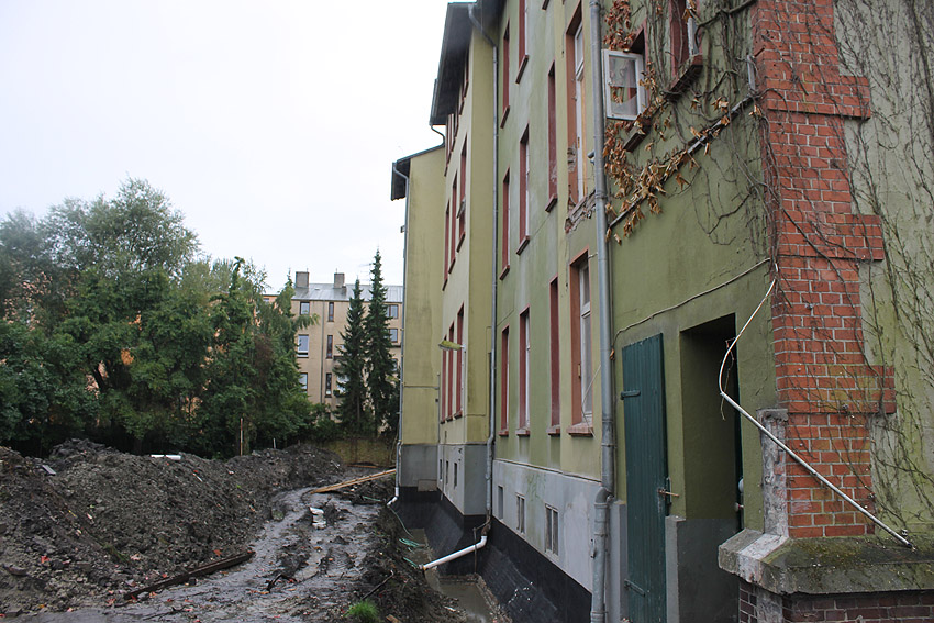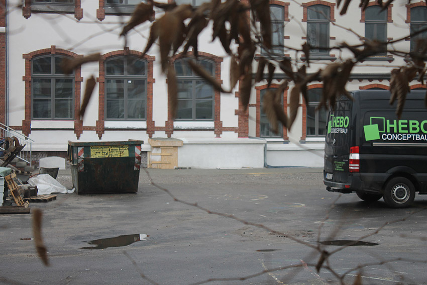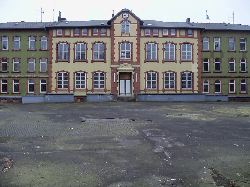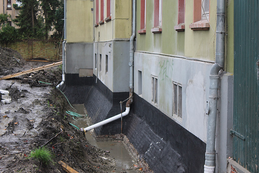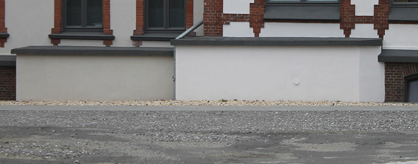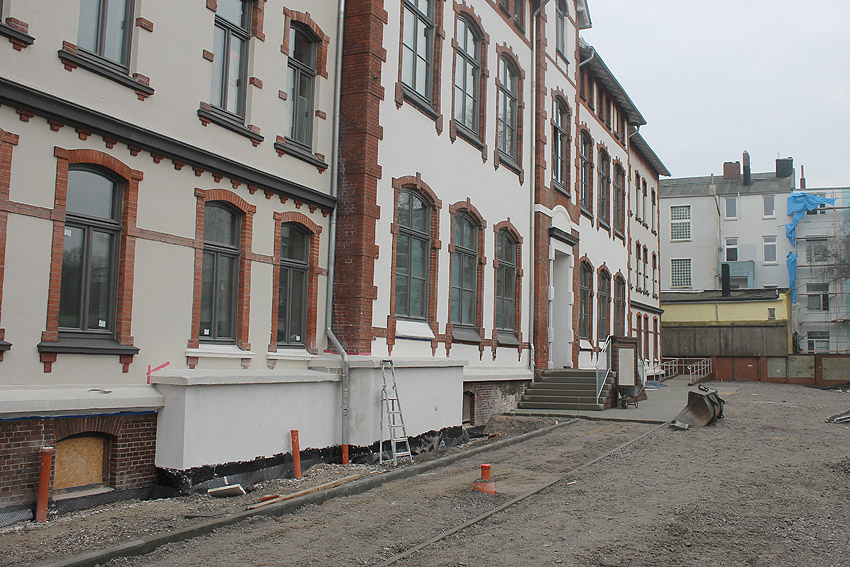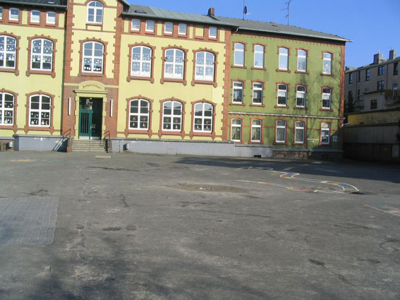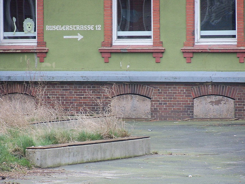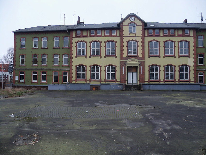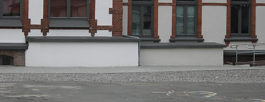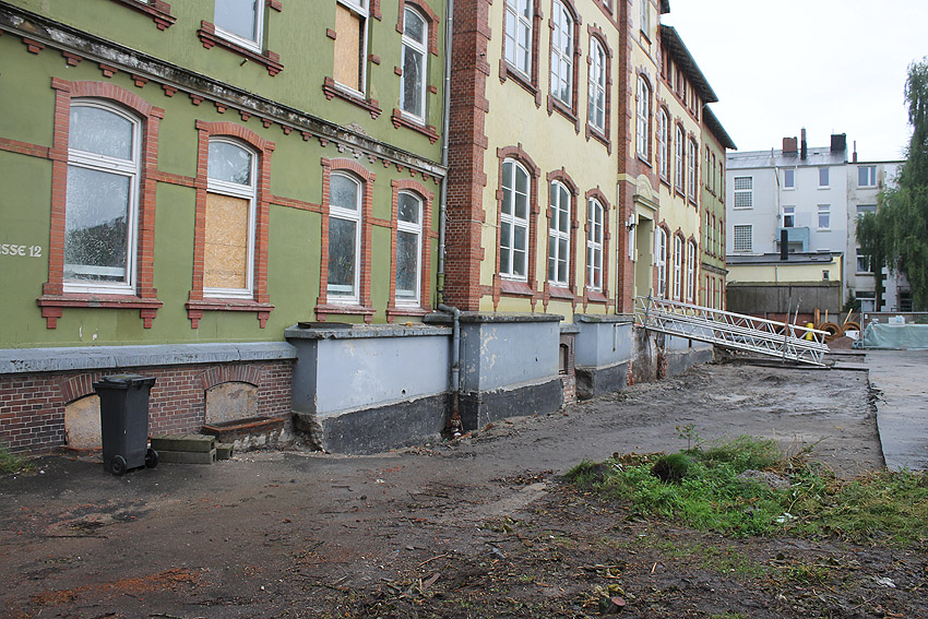 Zu erkennen die Schutzvorbauten des ehemaligen Schul-LS-Kellers.