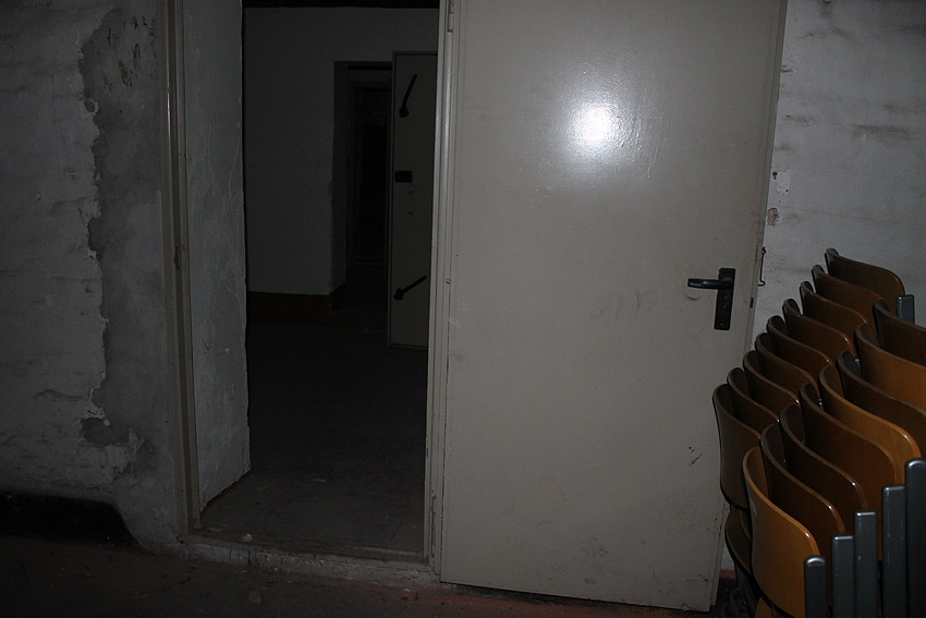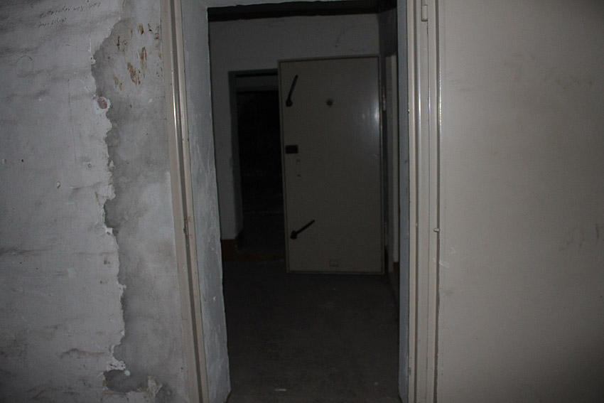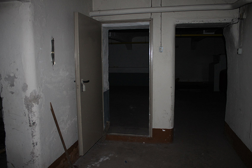 Das Innere, heute genutzt als Heizungskeller, zeigt im Bereich des ehemaligen LS-Kellers noch viele diesbezügliche Merkmale auf, insbesondere fast sämtliche Türen sind noch existent.