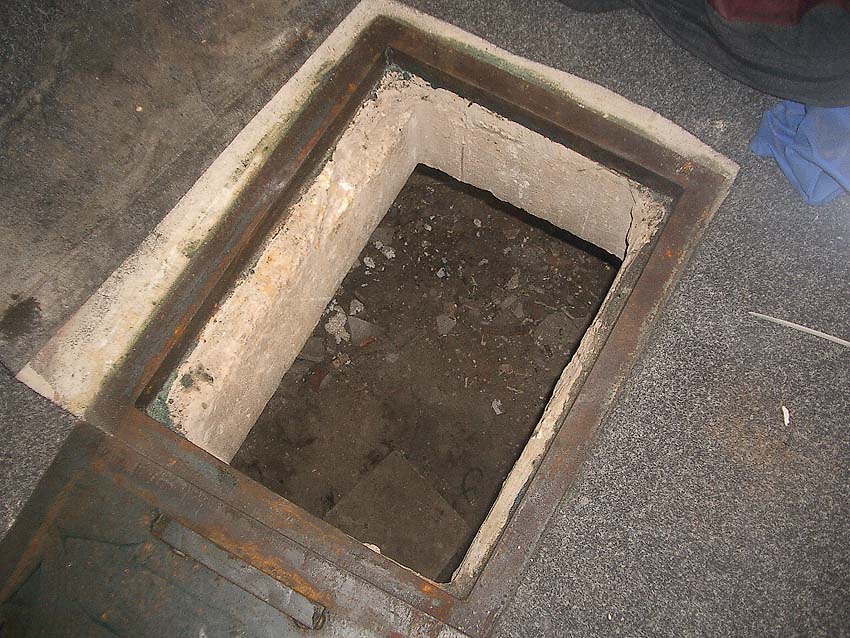 Eine von zwei Einstiegsluken im östlichen Gebäude, ob größere Zugänge vorhanden waren, ist ungewiss...