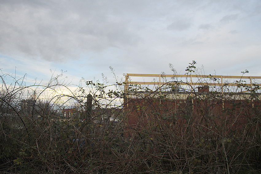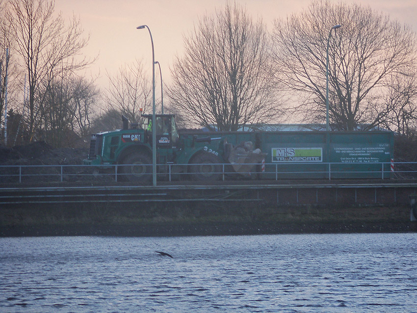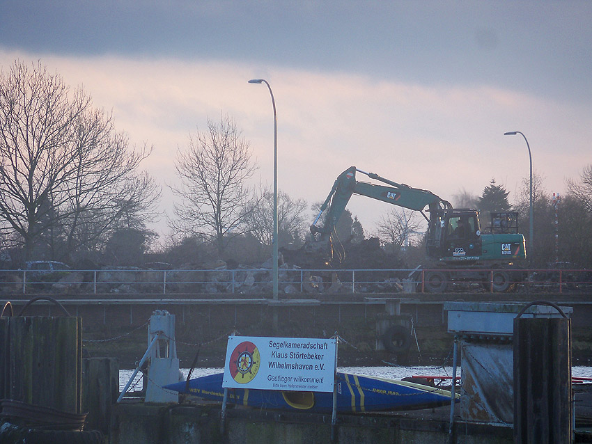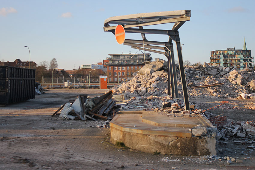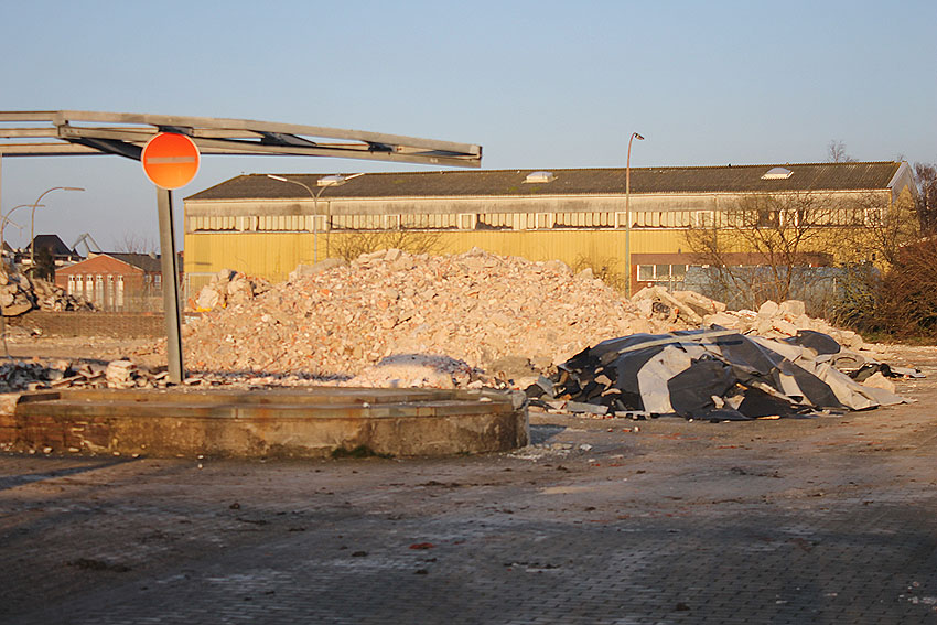 Es tut sich was. Die Stahlbetonfertigträger auf der Bunkerdecke wurden durch einen Bagger verschoben. Der Abrissbeginn dürfte näher rücken.