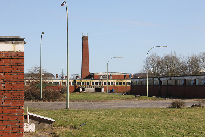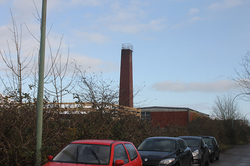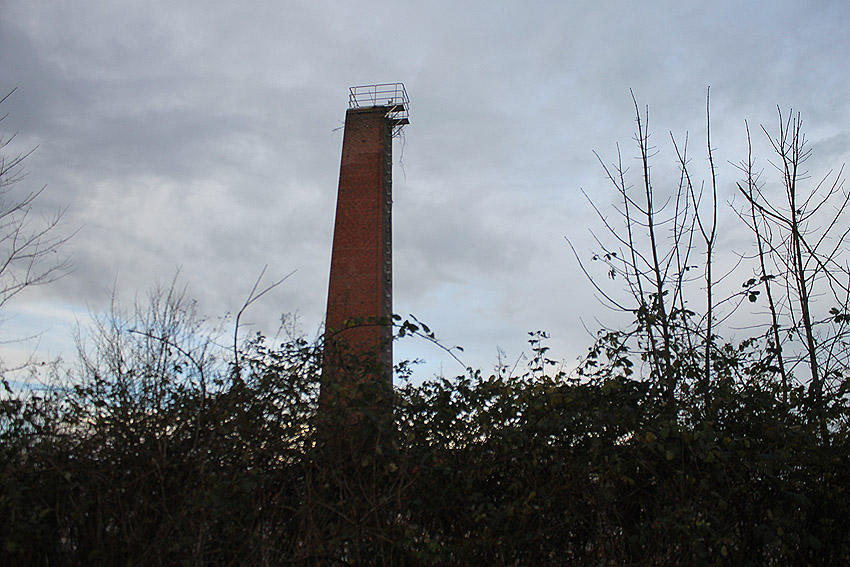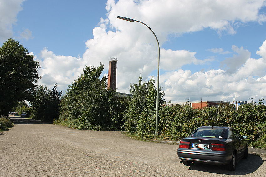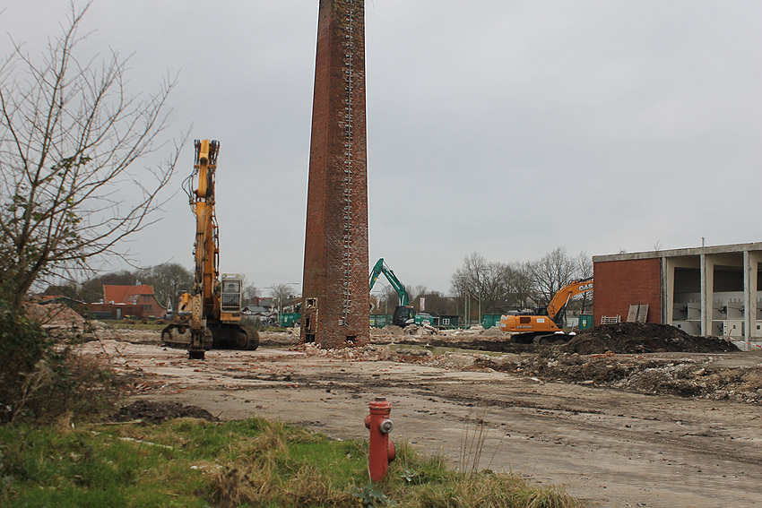 Der nahe am Bunker befindliche charakteristische Schornstein des ehemaligen Heizwerkes ist gestern gefallen.