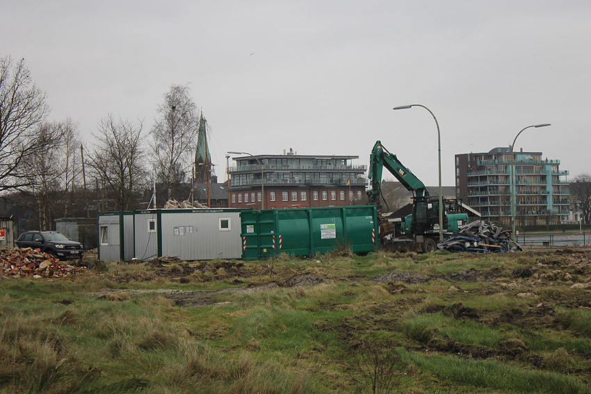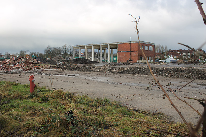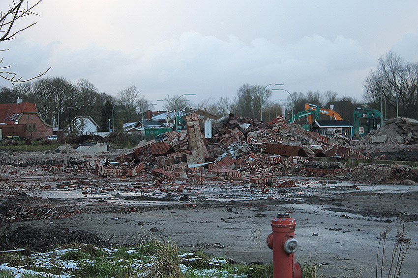 Die Bunkerdecke liegt nun wieder frei. Nur noch ein Gebäude existiert neben dem Tiefbunker auf dem Abrissgelände. Der Schornstein des Heizwerkes dürfte alsbald fallen. Ob die Arbeiten am Tiefbunker (wohl zunächst mit dem Abriss der Bunkerdecke) noch dieses Jahr beginnen, ist unklar.
