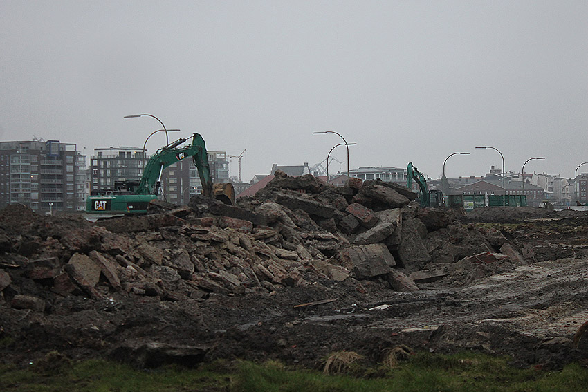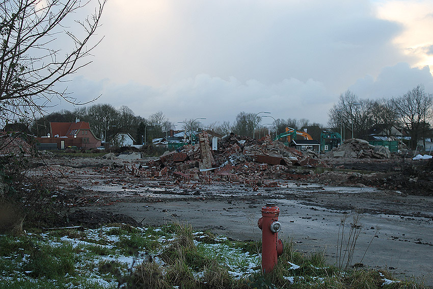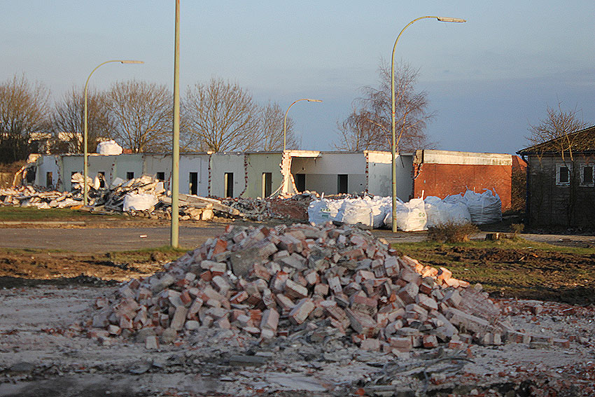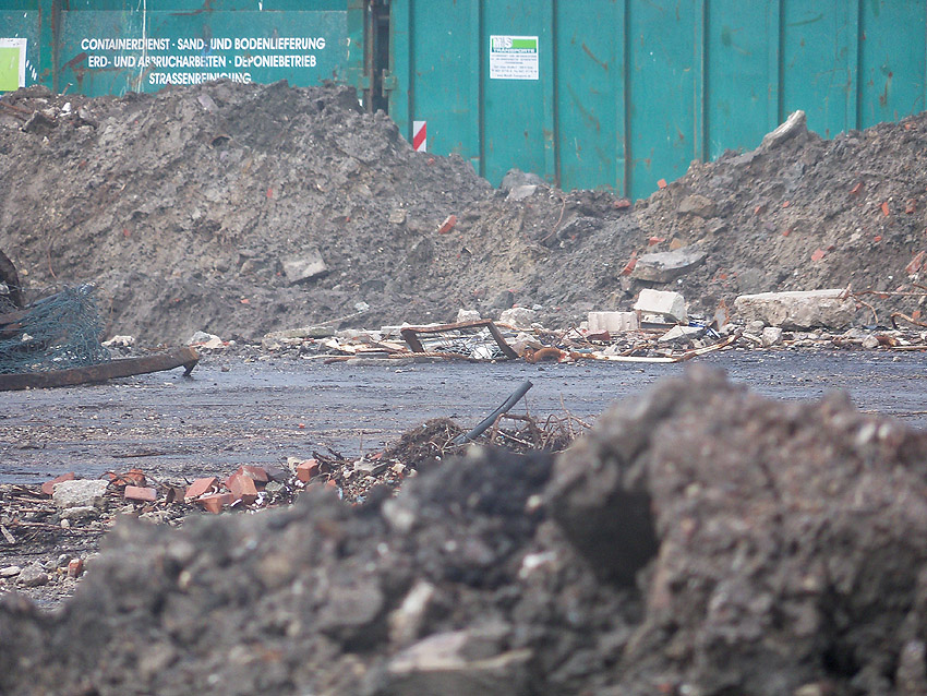 Im Oktober sollte nach unseren Informationen der Abriss der Gebäude eigentlich weiter fortgeführt werden. Bis jetzt sind hier lediglich einige Müllsäcke unter anderem am Tiefbunker aufgestapelt und ein Bagger fährt seine Runden. Es ist aber zu erwarten, dass alsbald wieder Aktivität stattfindet. Wir berichten weiter.