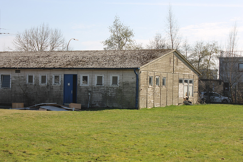 Auf dieser Fläche am Westbeginn der Wiesbadenbrücke befand sich die historische Baracke, die bereits vor einigen Wochen entfernt wurde. Diese Baracke wurde früh nach Kriegsende an der Stelle einer Ursprungsbaracke errichtet, die teilweise abgetragen worden war, deren Mittelbereich allerdings aber in den "Neubau" der frühen Nachkriegszeit integriert worden ist.