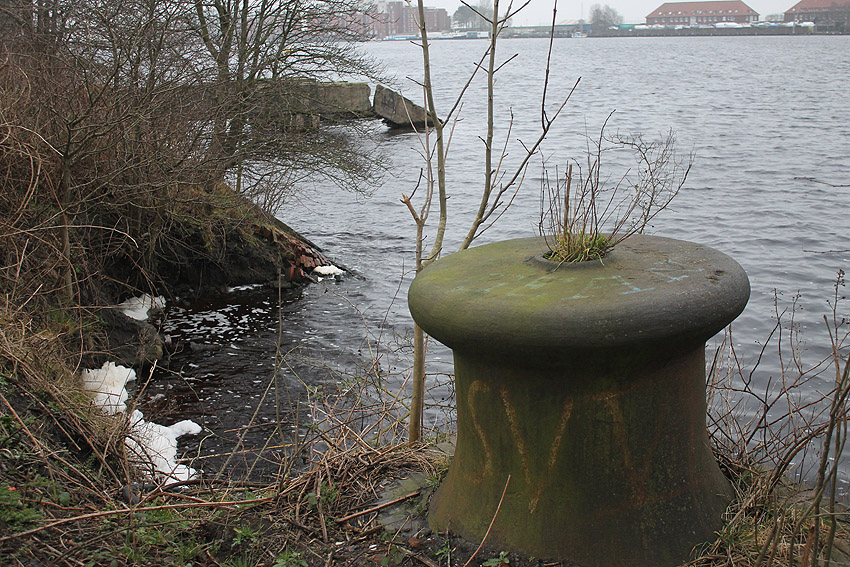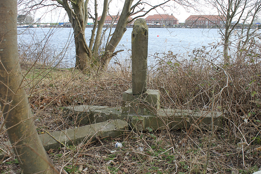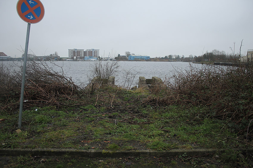 Das Objekt, bestehend aus zwei nebeneinander versetzt liegenden, eventuell durch eine Öffnung verbundenen Stahlbeton-"Quadraten", wurde im Januar 2018 aufgrund der Abrissarbeiten auf der Wiesbadenbrücke "entdeckt". Anscheinend war des nirgends verzeichnet. Bis in die Neuzeit stand genau auf der Objekt-Decke, die mit Erdgleiche in einer Linie lag, der Verkaufsstand für die dortigen Oldtimertreffen. Ist dies ein Munitionsbunker (Erster Weltkrieg?), ein Kohlenbunker (Kohlenzunge / Erster Weltkrieg?), eine Süßwasserzisterne (Schiffsversorgung? / Kühlwasser?), oder ein Tank (Öl / Treibstoff?) gewesen? Oder war es sogar eine weitere Personenluftschutzanlage? Der Abriss des Objektes erfolgt in Kürze. Der unter Wasser stehende Innenbereich wurde bereits leergepumpt. Wir berichten weiter.