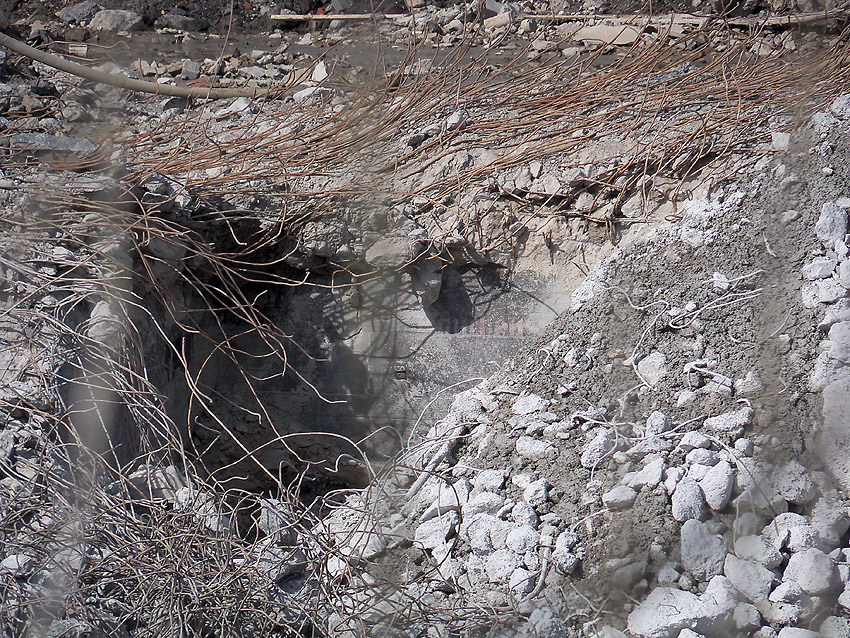 Mittlerweile ist die Decke des Tiefbunkers fast zur Hälfte abgebrochen. Zwei Bagger arbeiten sich mit dem Meißelhammer jeweils aus Osten und Norden vor. Die Höhe des Bunkers wurde inzwischen mit circa 5,50 Metern angegeben (+-1,50 m Decke - ohne nachträgliche Betonfertigträger - / 2,50 m Innenraumhöhe / 1,50 m Sohlplatte).