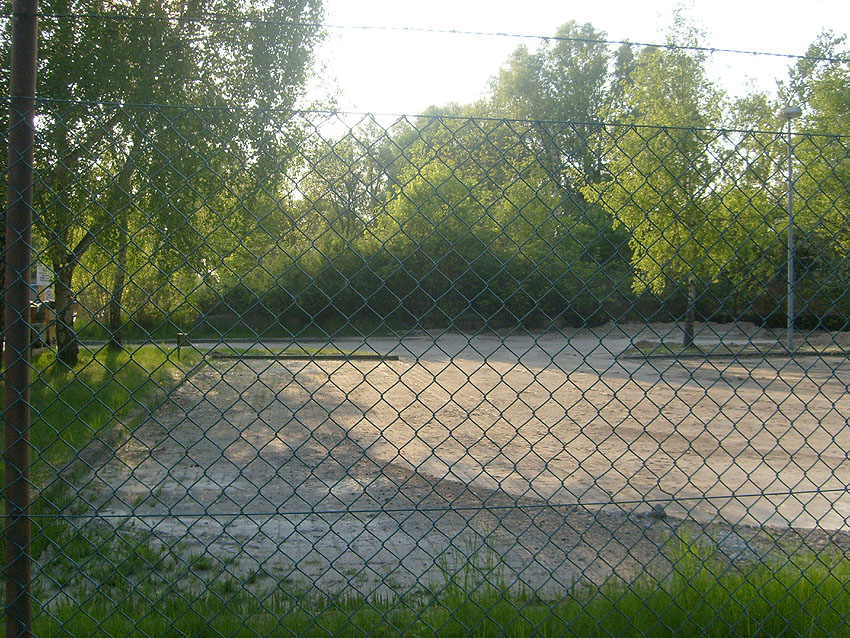 Der gesamte Parkplatz ist erneuert / umgewandelt worden zu einer Stellfläche wohl für Schwerfahrzeuge und ein neues großes Tor wurde an Stelle des alten Tores in die Geländeumzäunung eingebaut.