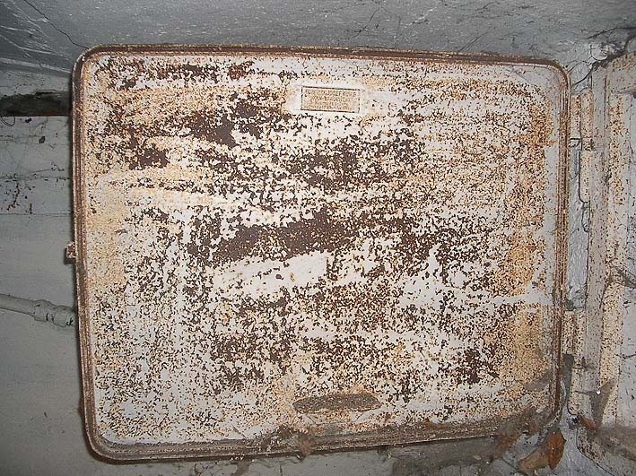 Heutiger Bestand (Stand September 2017): Neben dem in der Aufnahme erkennbaren Schriftfeld ein Soll-Mauerdurchbruch zwischen beiden Häusern und zwei noch vorhandene Druckschutztüren.
