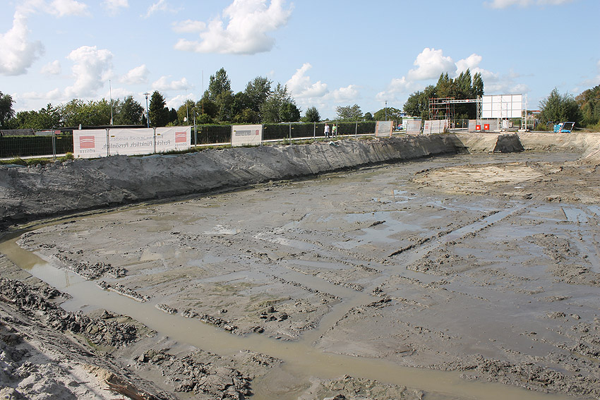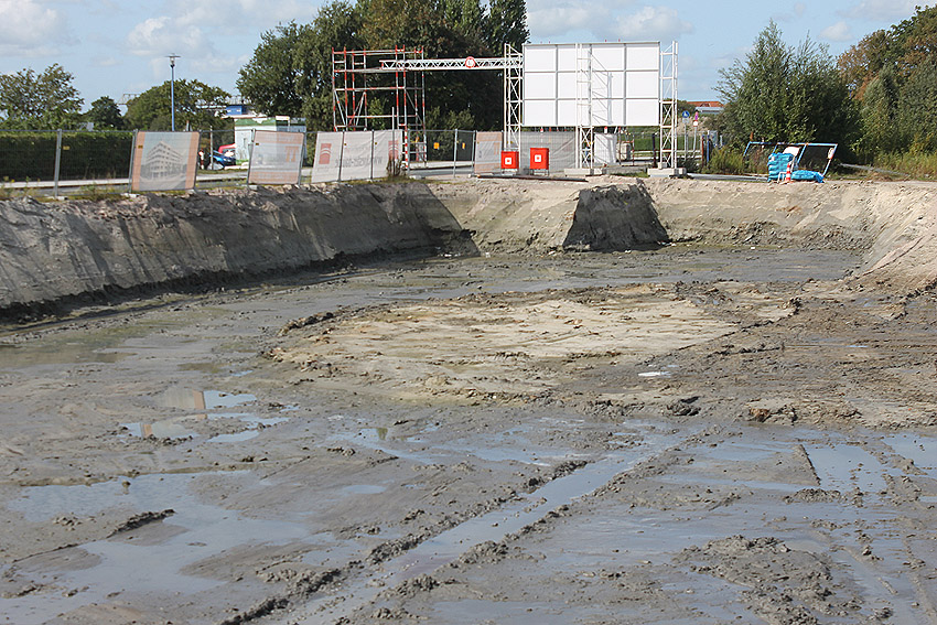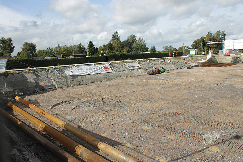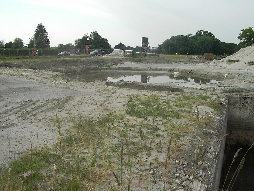 Nachtrag 04.06.15: Das Gelände wurde nicht bebaut. Ein Investor sprang ab. Das ganze Gebiet wurde wieder dichtgeschüttet und ist nun ein "Notparkplatz" (Schotterparkplatz). Hier liefen Dinge, wie sie so eigentlich nicht laufen sollten...