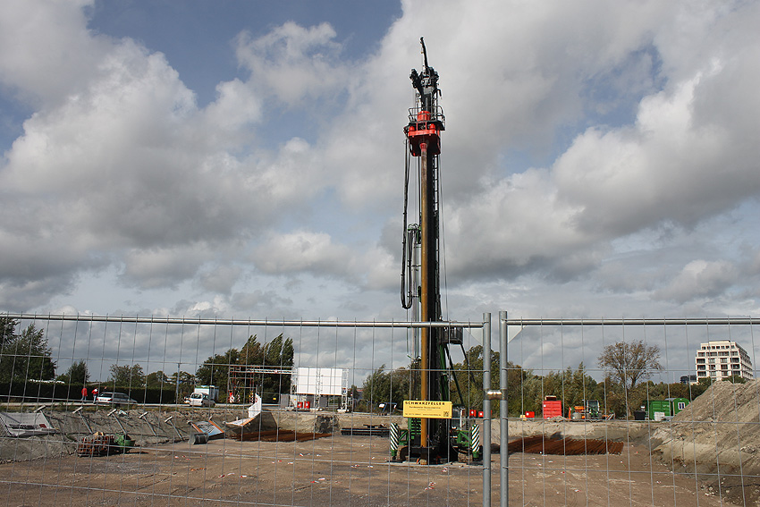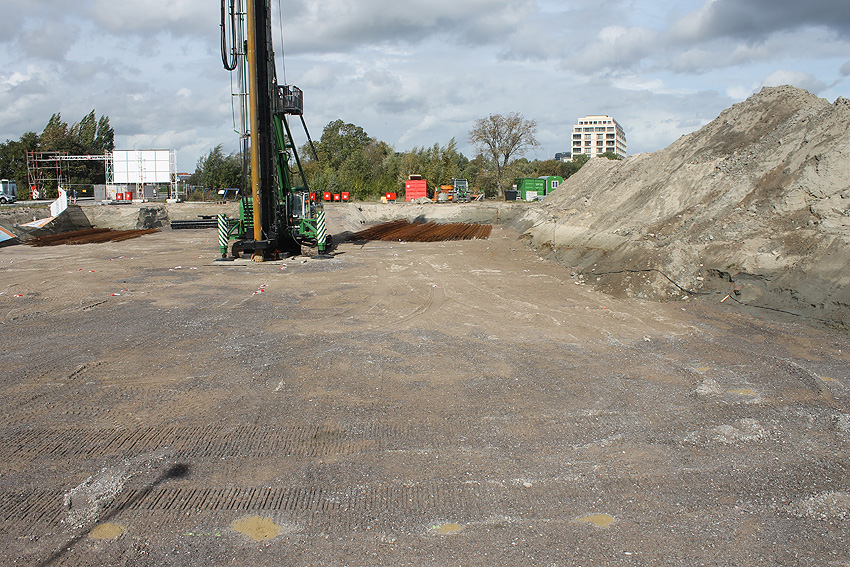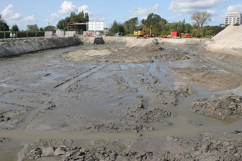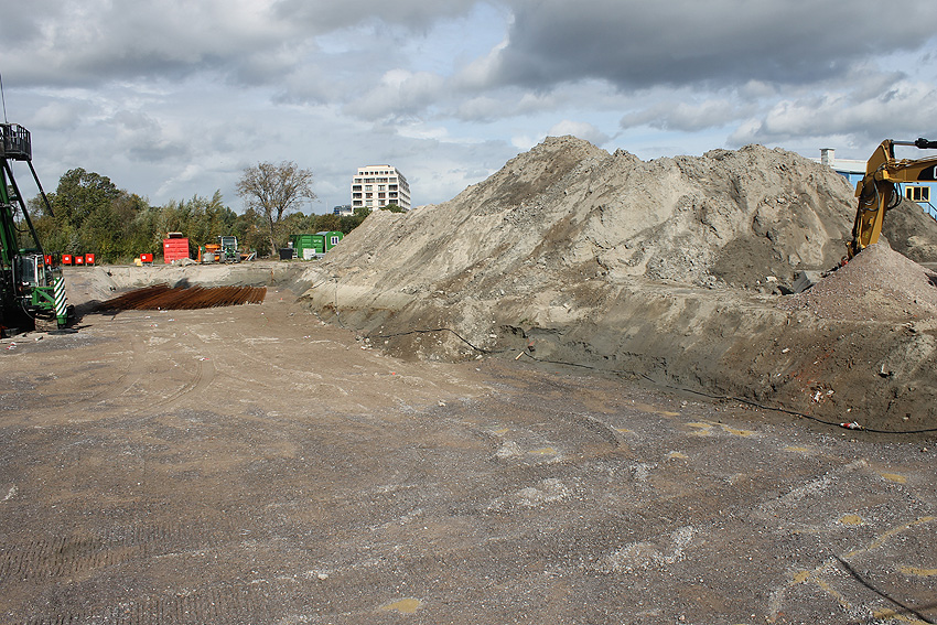 Nachtrag 03.07.10: Mittlerweile wurde eine unterirdische Kammer freigelegt. Noch immer herrscht Baustopp. Die Gruben sind inzwischen komplett mit Wasser vollgelaufen...