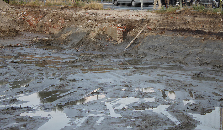 Nachtrag 08.04.11: Das mittlerweile seit geraumer Zeit brachliegende Baugrundstück gleicht mittlerweile einem idyllischen Teichgelände...