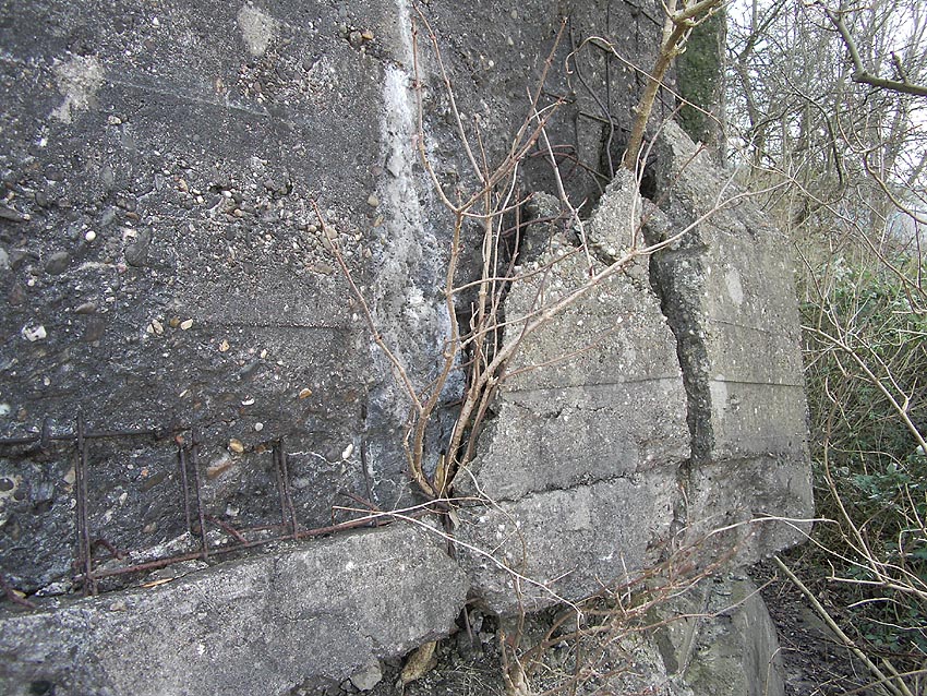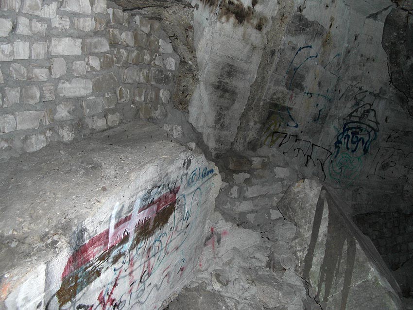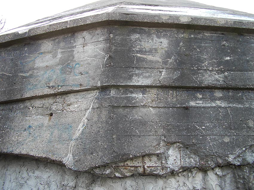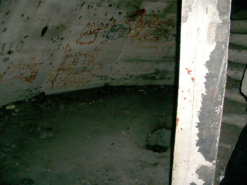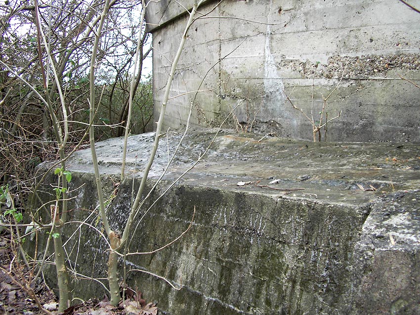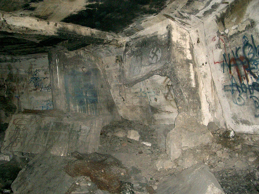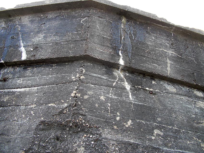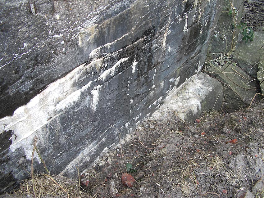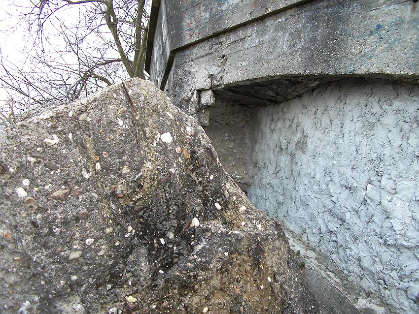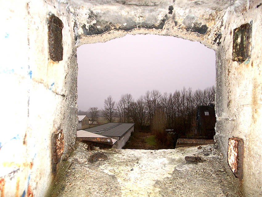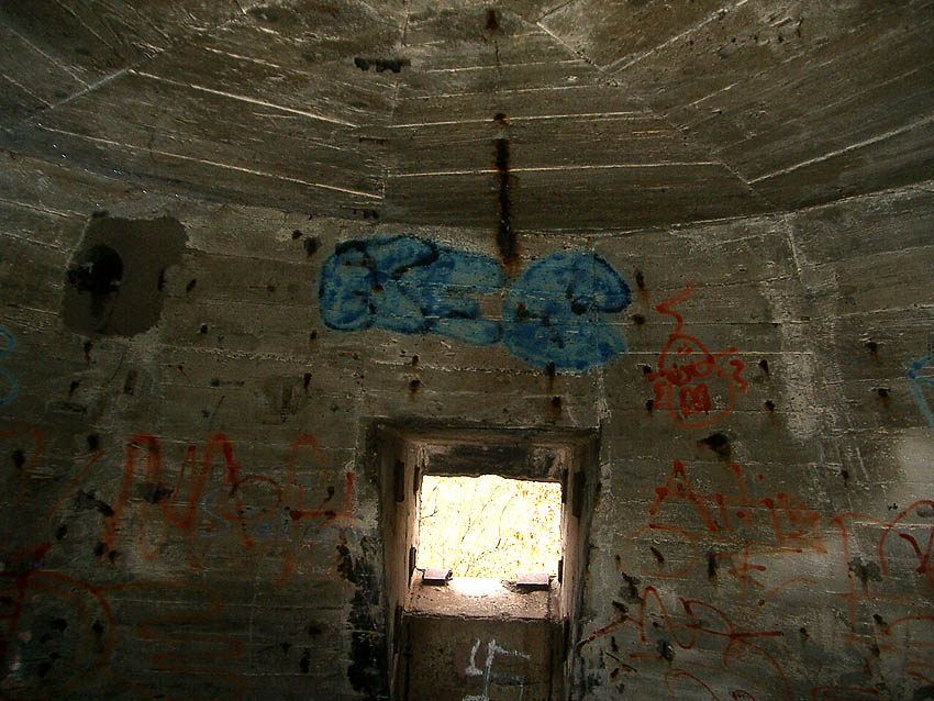 Die erste bis sechste Ebene des Turmes könnte mutmaßlich unterschiedlich zum Turm Norderneystraße aufgeteilt gewesen sein. Es könnte sein, dass hier die Ebenen in jeweils vier Raumzellen aufgeteilt gewesen waren. Hier wie auch auf den Fotos weiter oben zu sehen sind mutmaßliche Reste einer Trennwand an der Decke. Es kann aber auch sein, dass dies lediglich Deckenverstärkungsträger waren. Einige glatte Bereiche an den Resten deuten darauf hin...