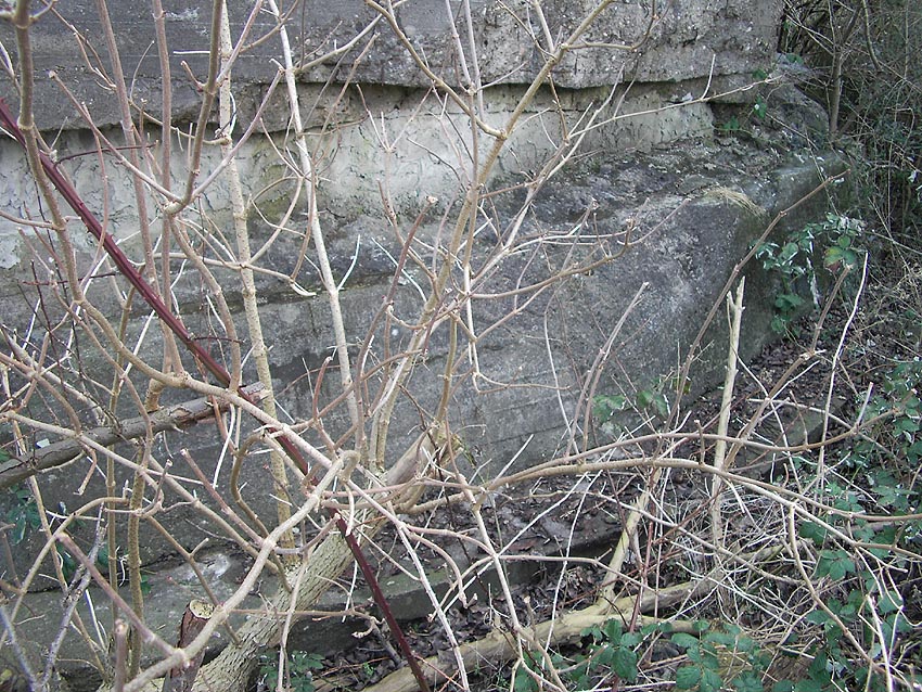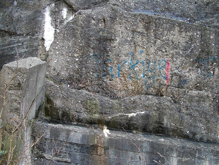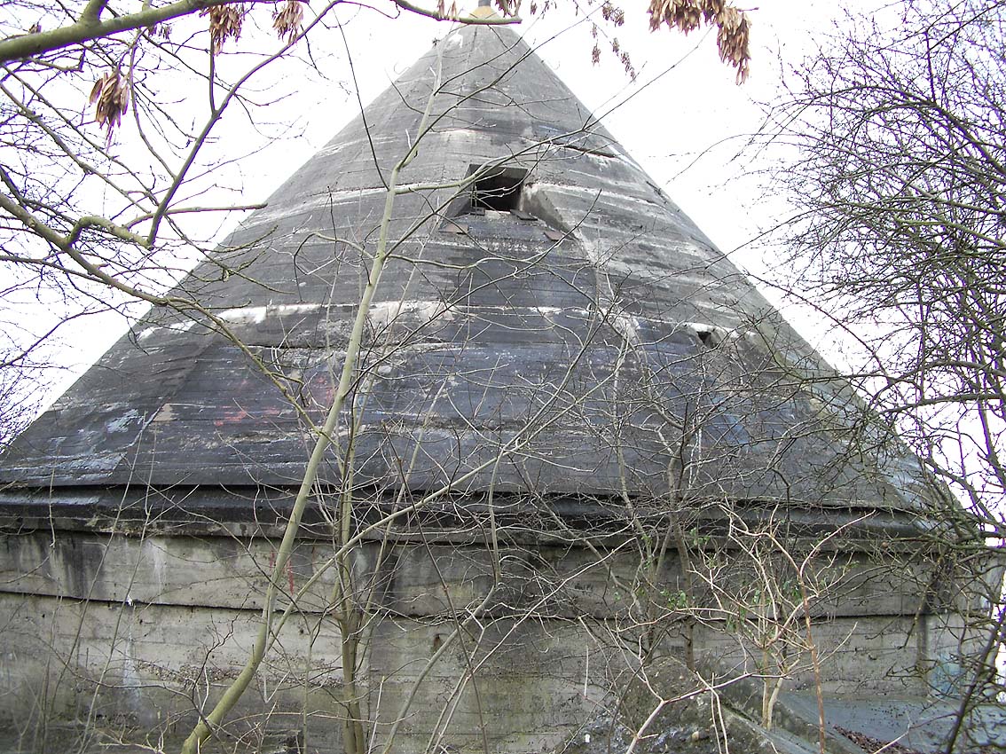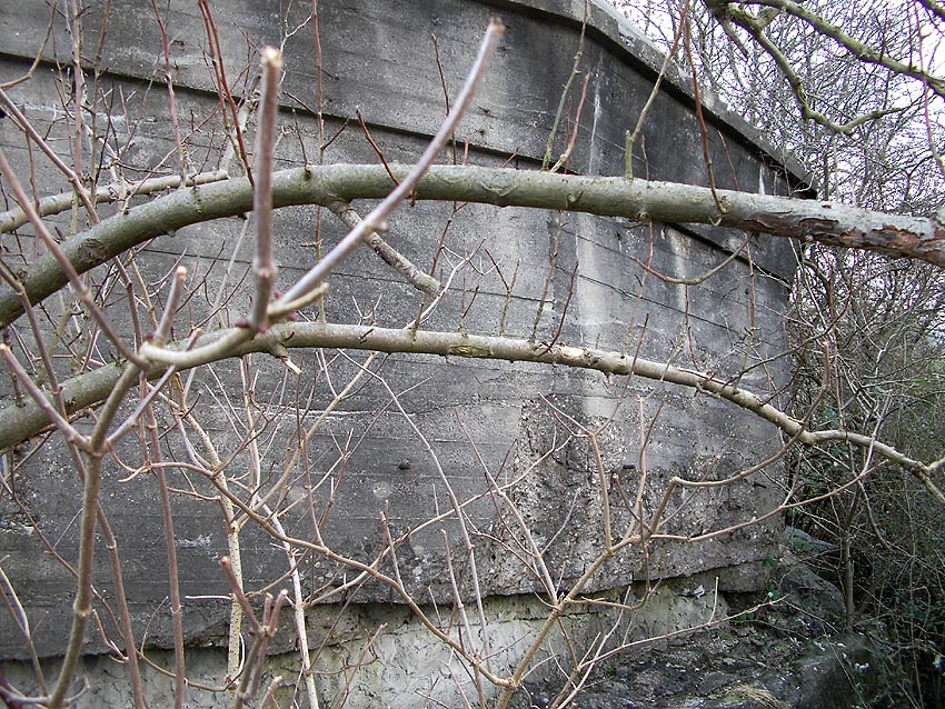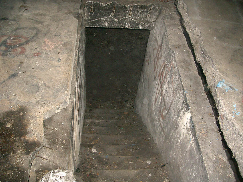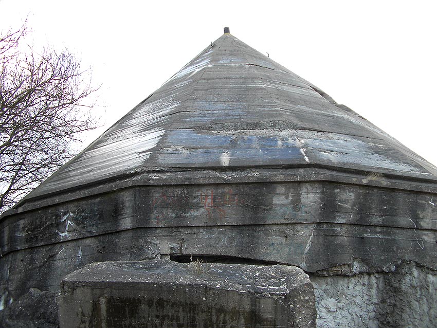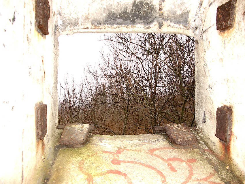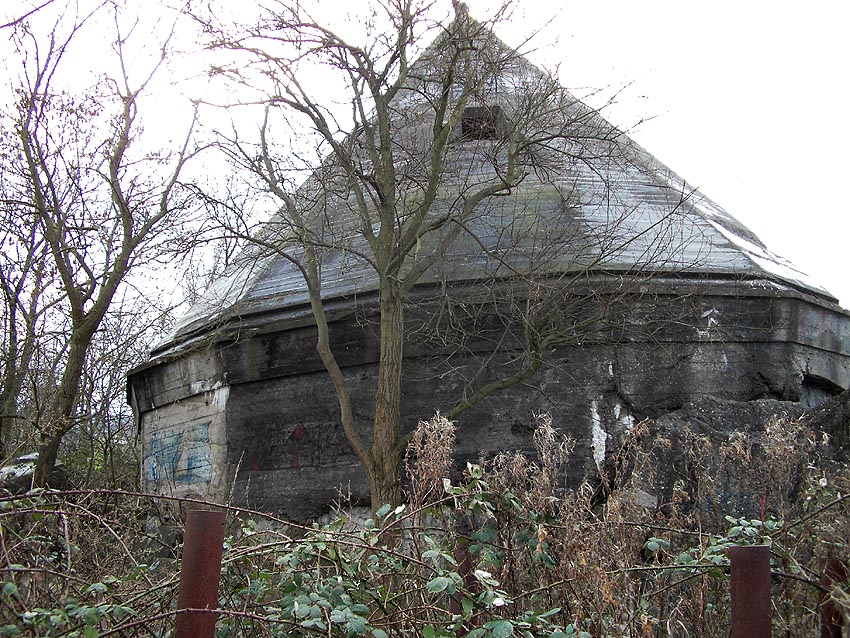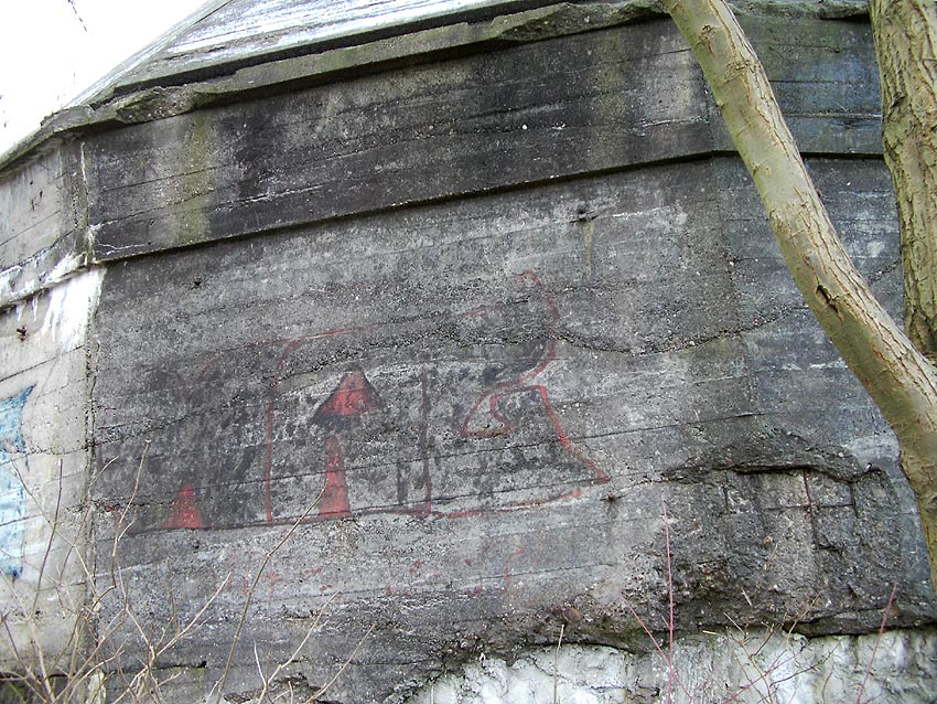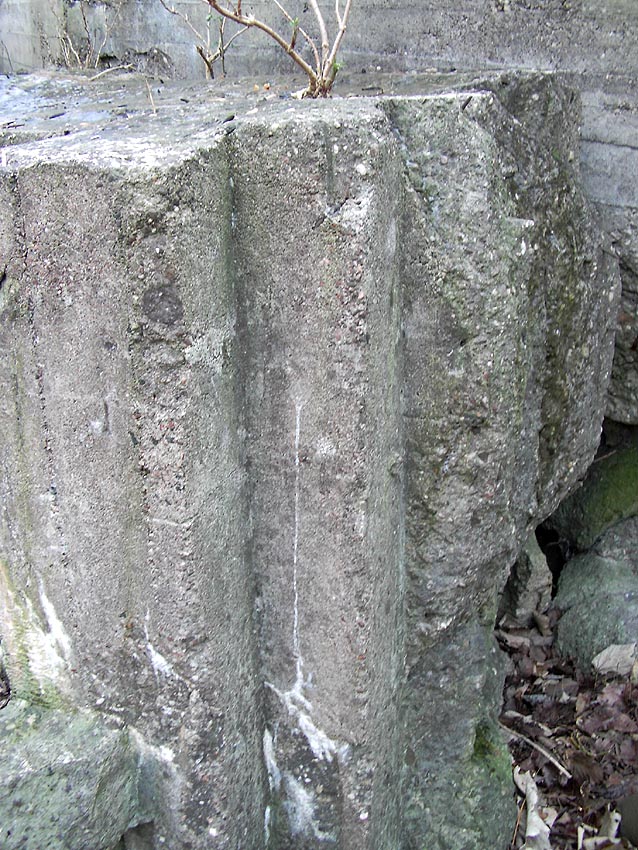 Die erste bis sechste Ebene des Turmes könnte mutmaßlich unterschiedlich zum Turm Norderneystraße aufgeteilt gewesen sein. Es könnte sein, dass hier die Ebenen in jeweils vier Raumzellen aufgeteilt gewesen waren. Hier wie auch auf den Fotos weiter oben zu sehen sind mutmaßliche Reste einer Trennwand an der Decke. Es kann aber auch sein, dass dies lediglich Deckenverstärkungsträger waren. Einige glatte Bereiche an den Resten deuten darauf hin...