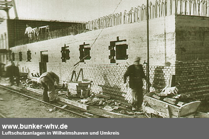Das Wirtschaftsgebäude der ehemaligen Flakstellung Tirpitzschleuse wurde verbunkert gebaut. Gleichzeitig wurde es aus Tarnungsgründen im fertigen Zustand im Stil eines normalen Gebäudes gehalten (z.B. Fensterattrappen sind auf dem Bild zu erkennen)...