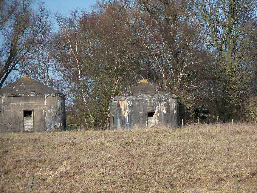 Der Fundamentbereich dieser vier Bunker ist klar ersichtlich, da sie mittlerweile teilweise schräg abgesackt sind, aber ohnehin im Fundamentbereich schon leicht erhöht über Erdgleiche angelegt worden waren.