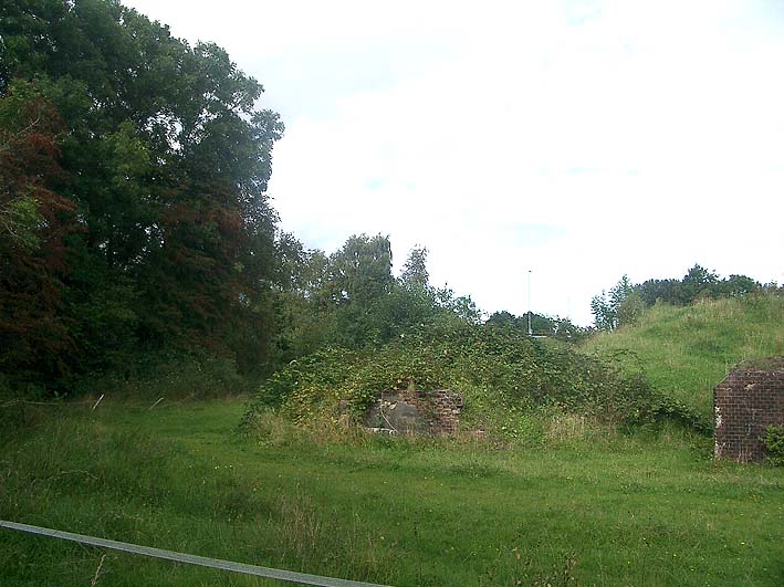 Zu sehen ist hier das Gebiet des nördlichen Batterie-Infanteriewerkes. Eine zweite, bauähnliche Batterie befand sich nicht weit südlich dieser Stellung in einem weiteren Infanteriewerk am Deich. Davon ist jedoch heute nichts mehr erkennbar.