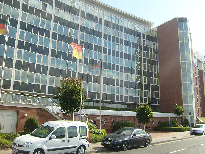 Links Turm "Hipper", rechts Turm "Seydlitz". Sicht aus Nordosten über die Kaiser-Wilhelm-Brücke hinweg.